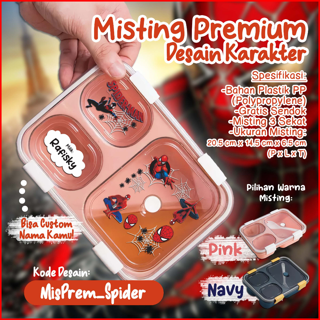 Misting Lunchbox Kotak Makan Bento Box Custom - Desain Karakter Game Kartun Super Hero Kesukaan Anak Favorit Spider M A