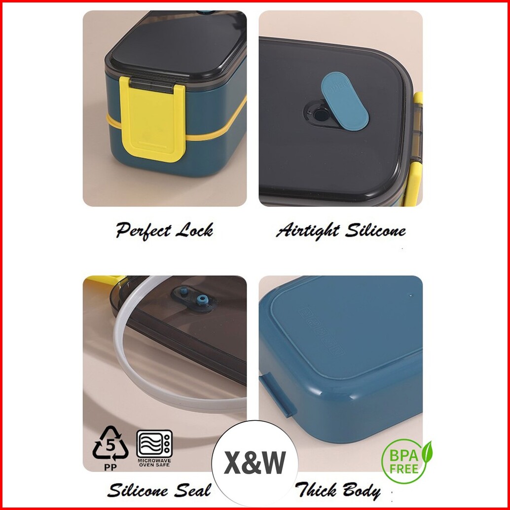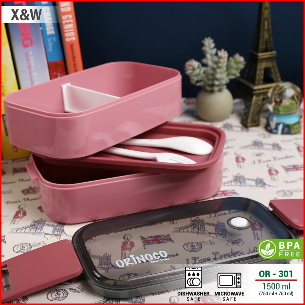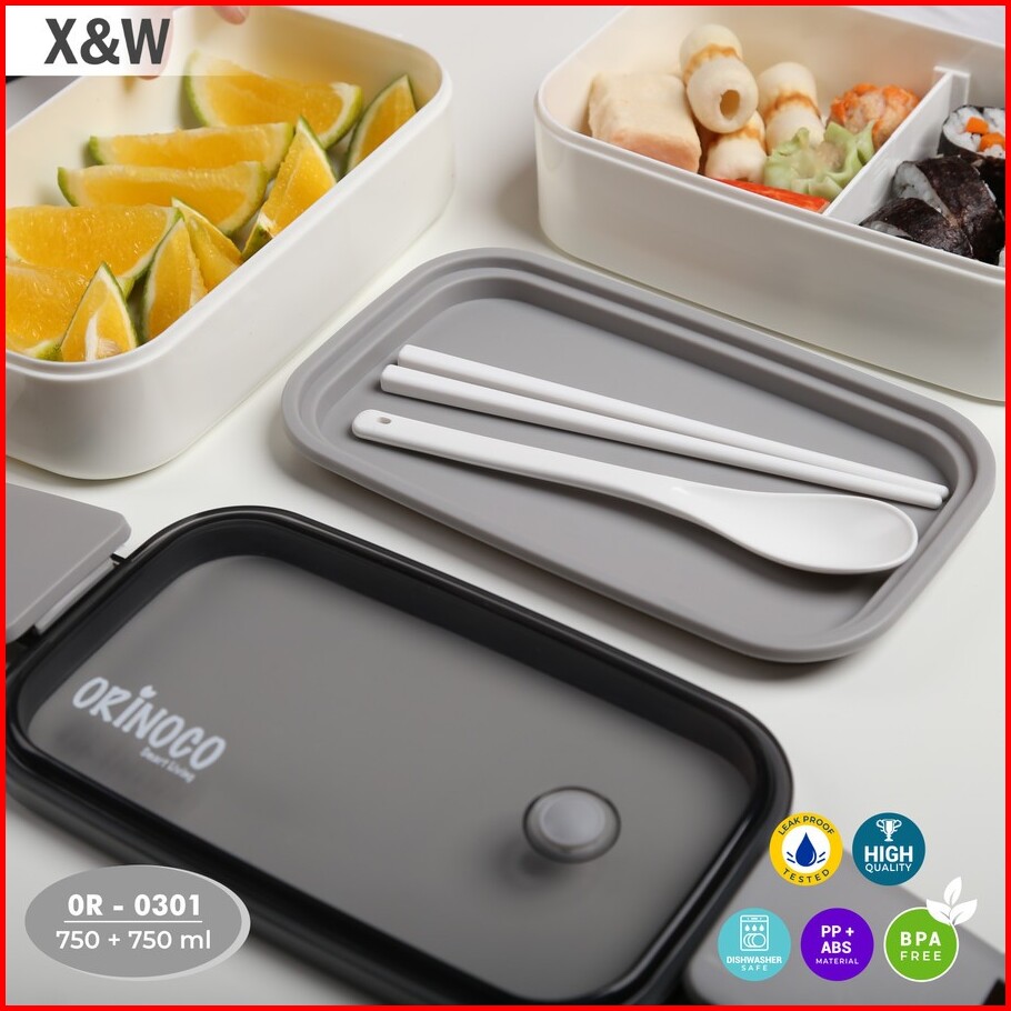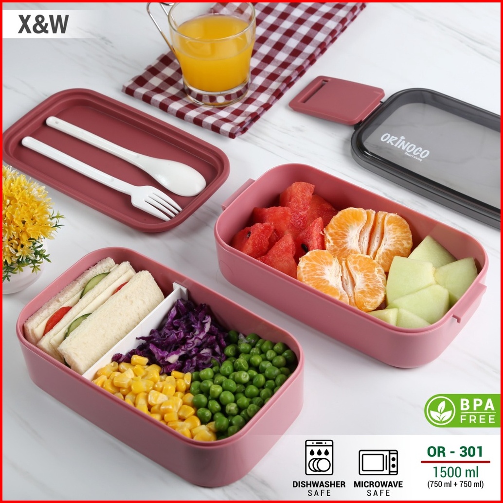 X W Lunchbox Set Bento Or-301 Ukuran Besar 1500 Ml Kotak Bento Ala Jepang 2 Susun Anti Tumpah
