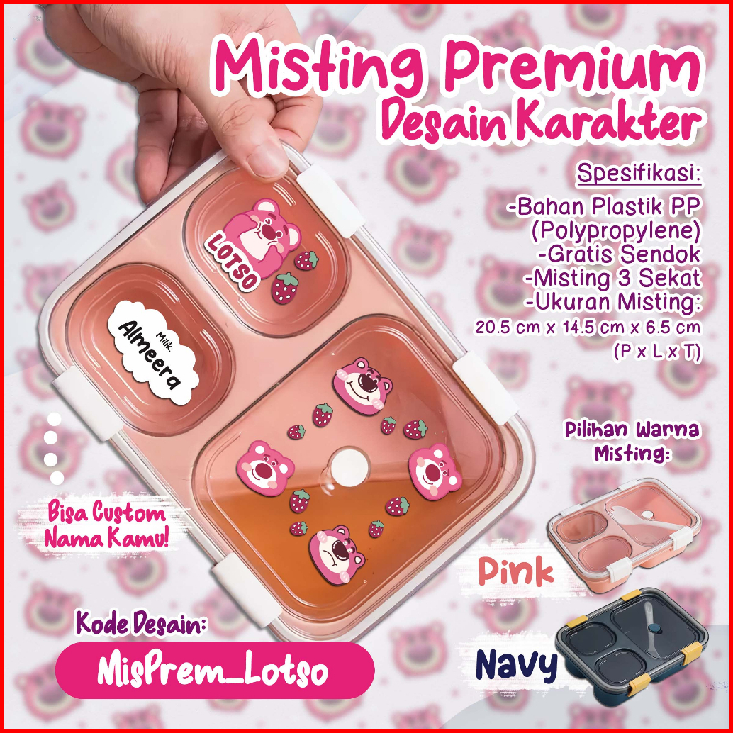 Misting Lunchbox Kotak Makan Bento Box Custom - Desain Karakter Game Kartun Lucu Banget Beruang Pink Stroberi Lucu Lot S