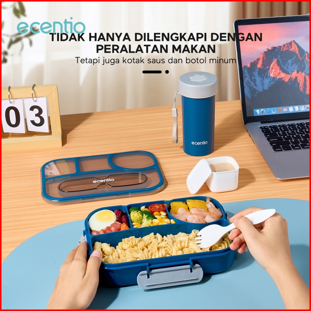 Grosirecentio Kotak Bekal Makan Set 1100ml Sekat 4 Dengan Sticker Bpa Free Lunch Box Set Gratis Botol Minum
