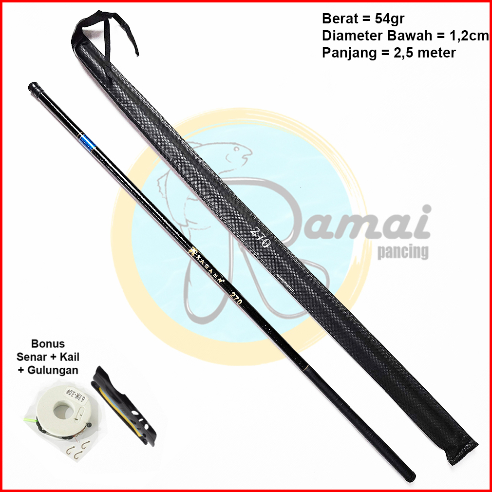 Joran Tegek Pancing Kagawa Black Gloss Bonus Senar Kail