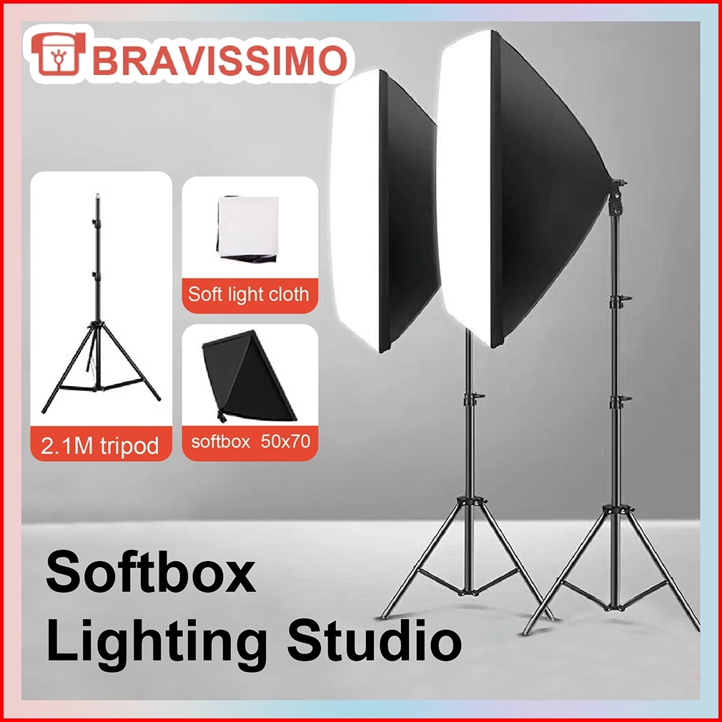 Softbox Lighting Studio Paket Studio50x70cm 2.1m Tripod Photography Untuk Streaming Studio Lighting Potret