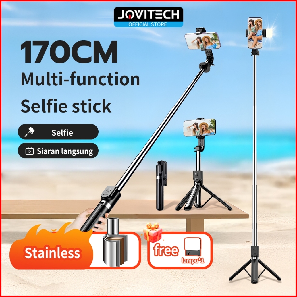 Jovitech Tongsis Selfie Tripod Lampu Led Bluetooth 4 In 1 Dengan Remote Control Selfie Stick Portable Flexible Lampu Led