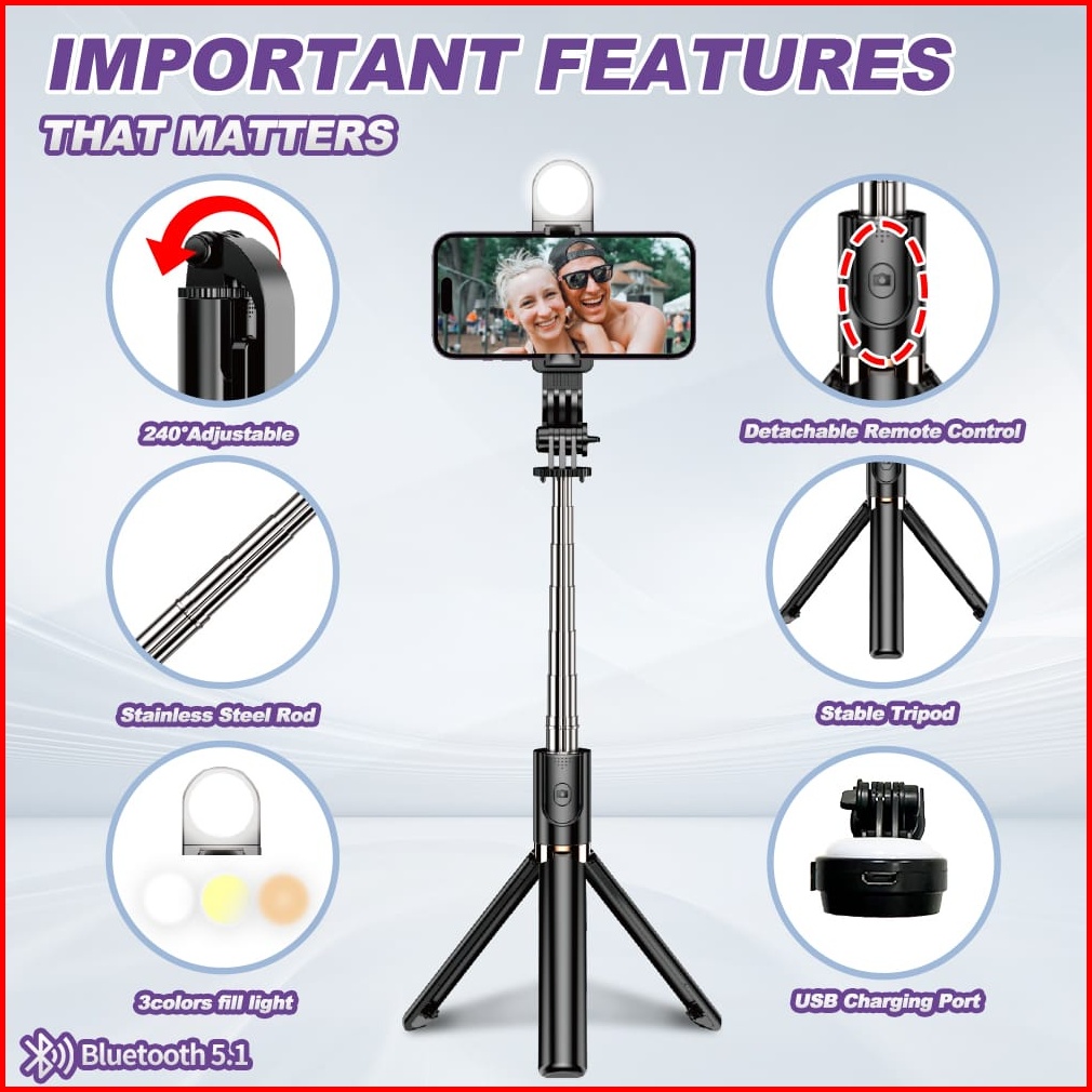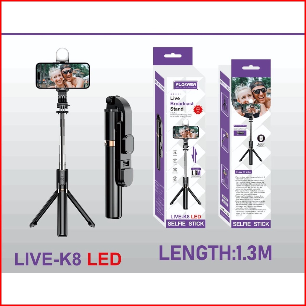 Tongsis Bluetooth K8 1.3m Tripod Remote Led Tongsis Wireless 130cm