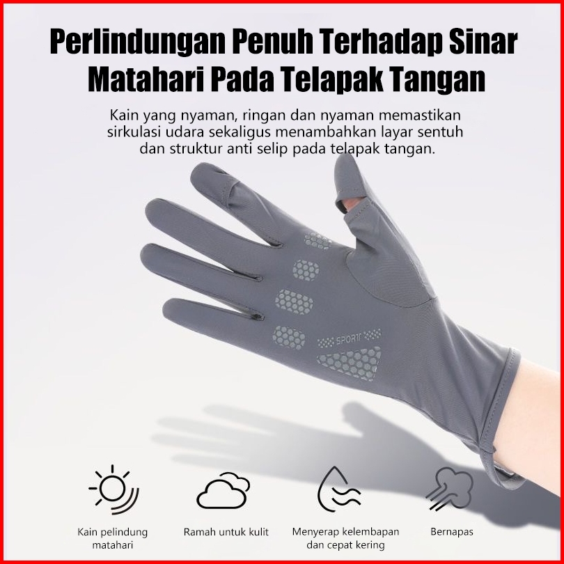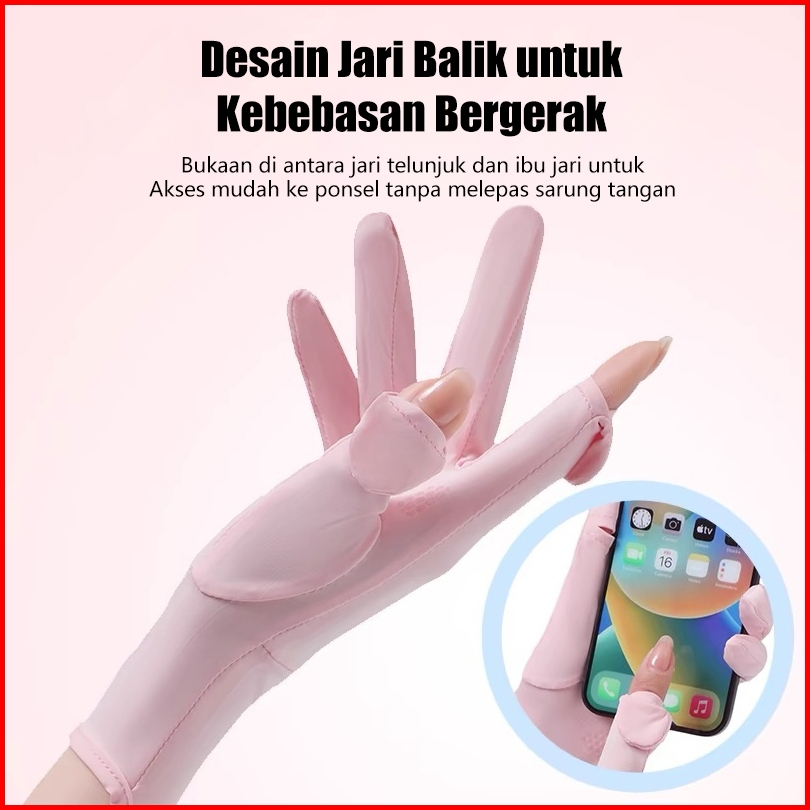 Sarung Tangan Anti Uv Motor Wanita Sarung Tangan Gloves Sutra Es Lembut Anti Selip Sarung Tangan Jempol Touch Screen Upf