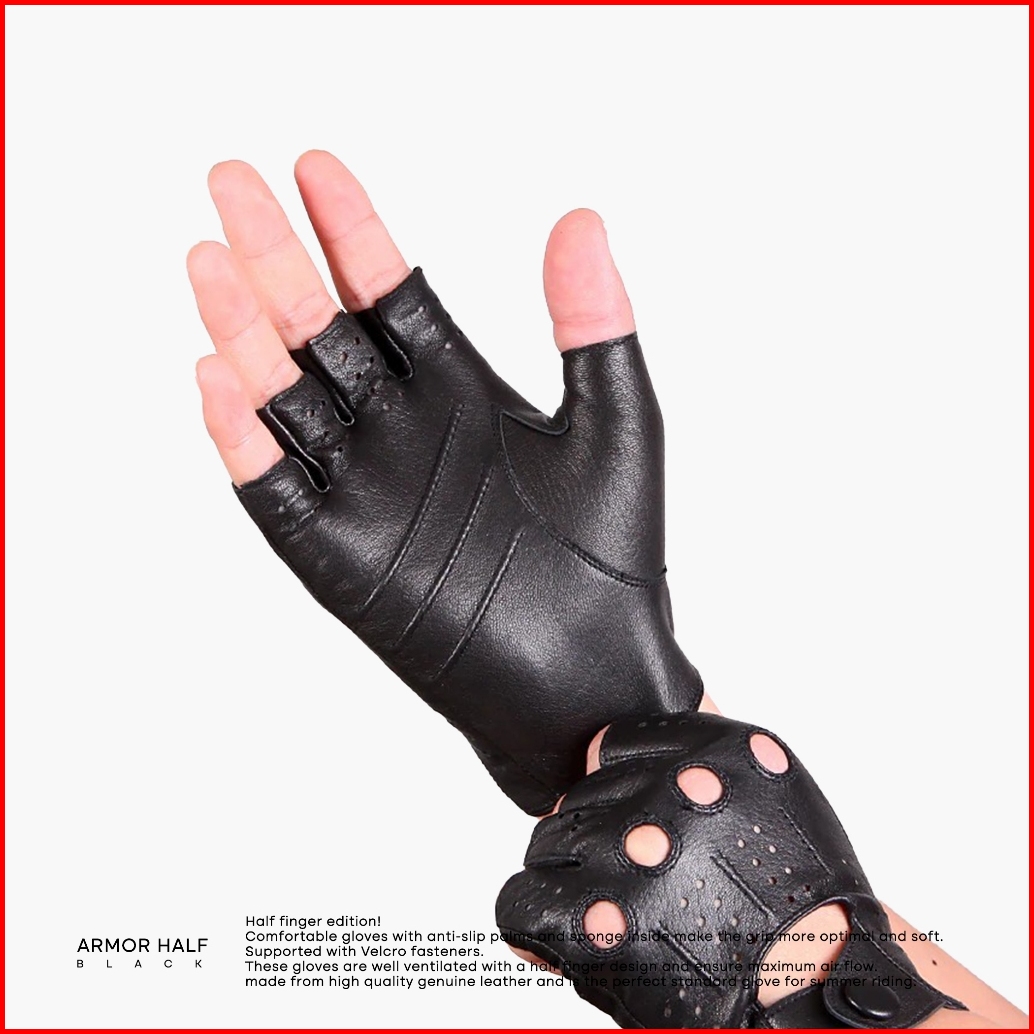 Wj Leather - Sarung Tangan Motor Kulit Setengah Jari Armor