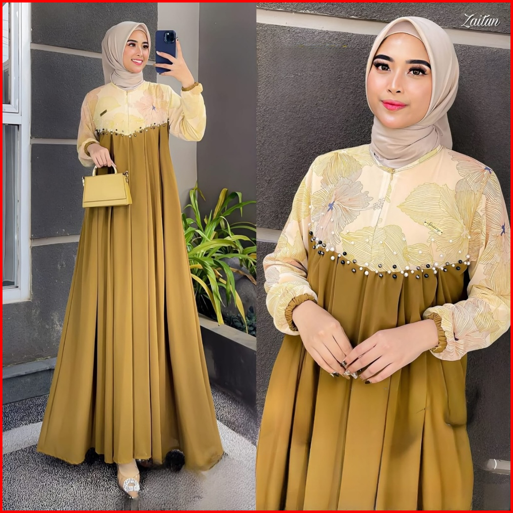 Qifara Dress Gamis Premium Gamis Ceruty Babydoll Terbaru Gamis Kondangan Dress Maxi Fashion Wanita Muslim Busui Aksen Pa