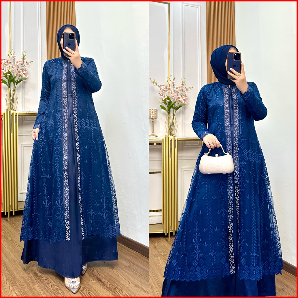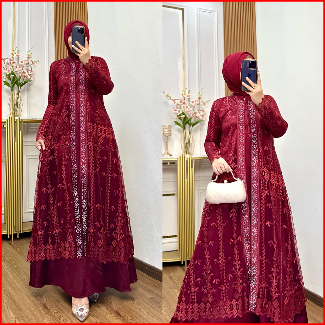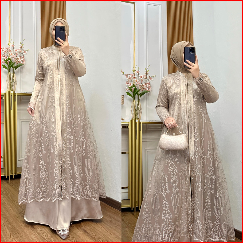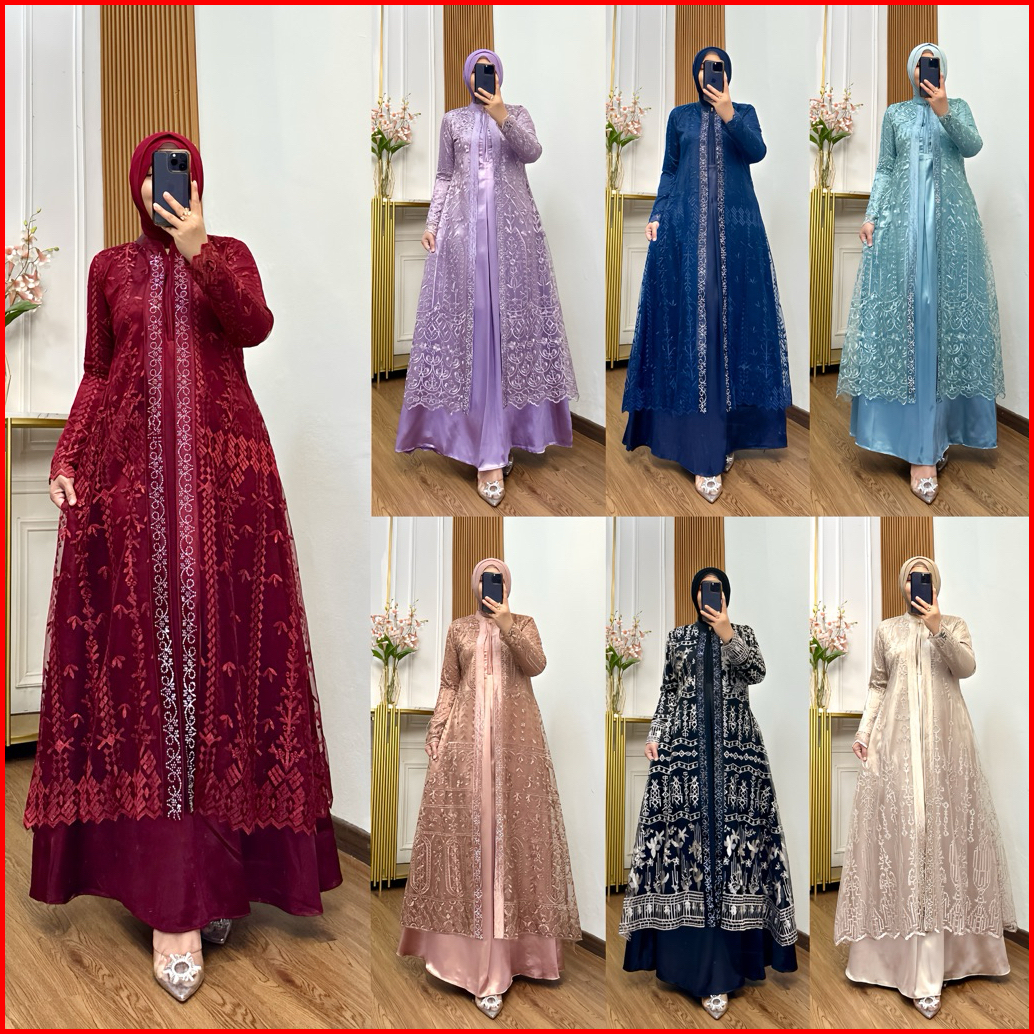 Nadira Dress 2 Busui Bahan Organza Bordir Dengan Detai Payet Mote Gamis Pesta Baju Kondangan Mewah Tersedia Ukuran Jumbo