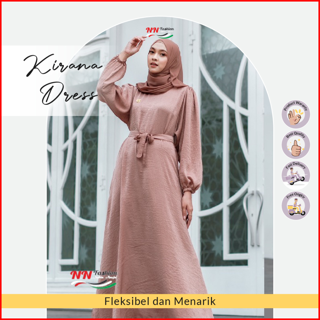 Kirana Dress Gamis Shimmer Silk Santorini Premium Polos Wudhu Frendly Terlaris By Nnfashion22