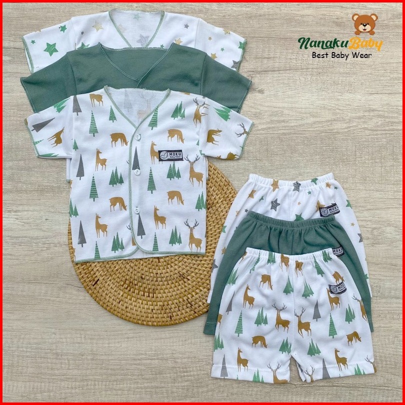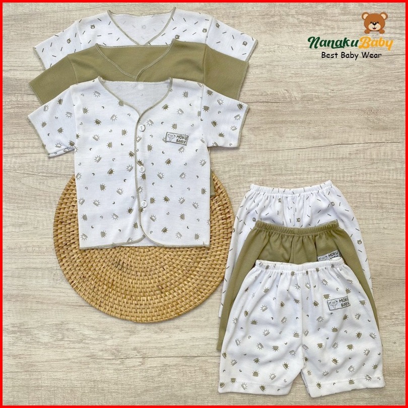 Nanaku Baby - Isi 6 Pcs Baju Celana Bayi Baru Lahir Setelan Pendek Newborn Usia 0-3 Bulan
