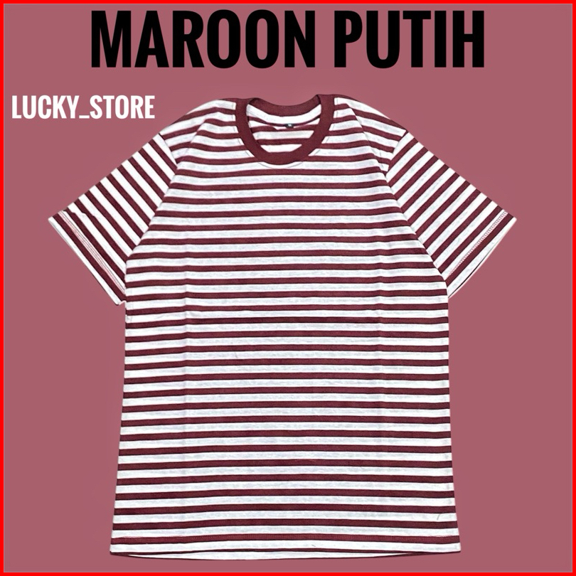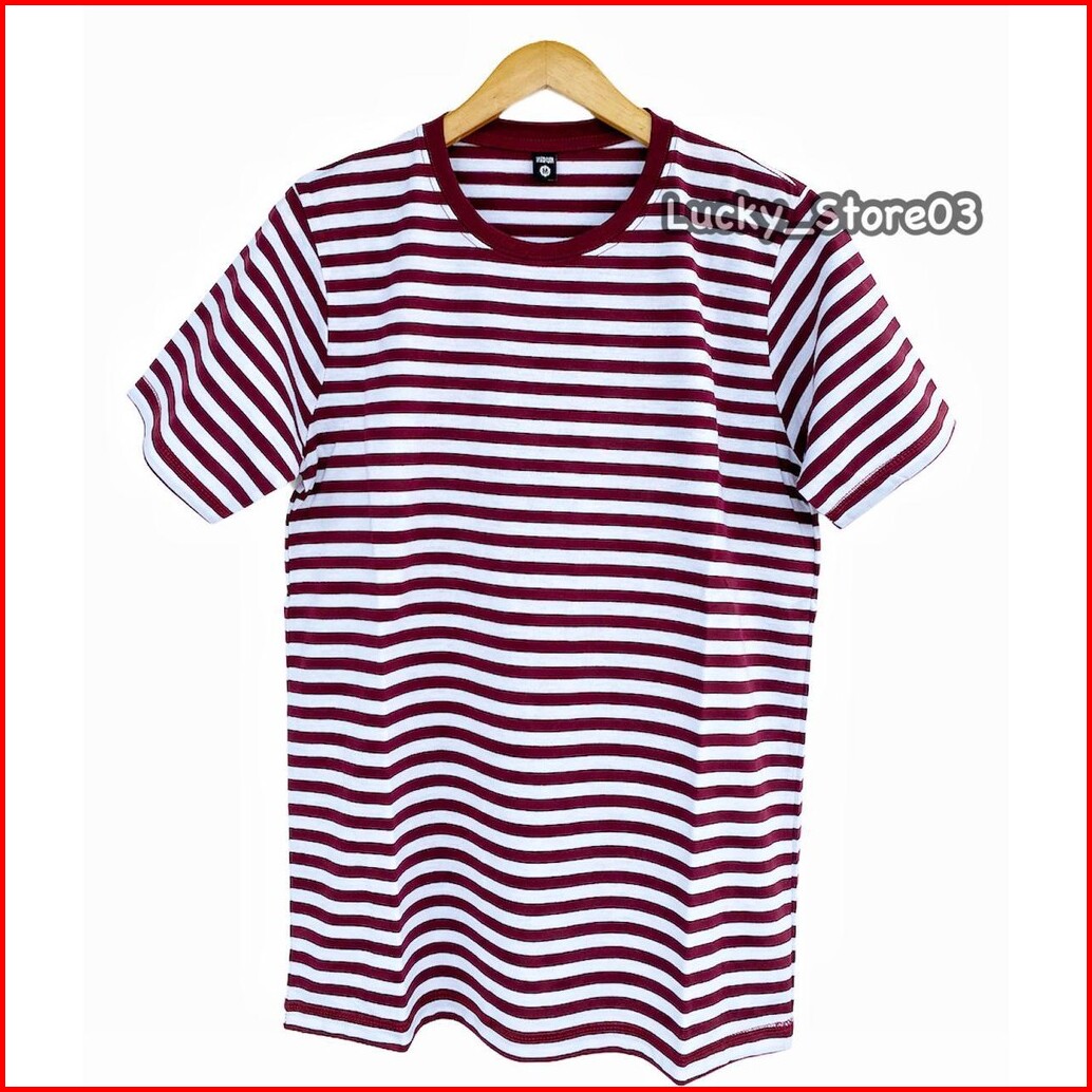 Kaos Stripe Pria Maroon Putih Garis Kecil