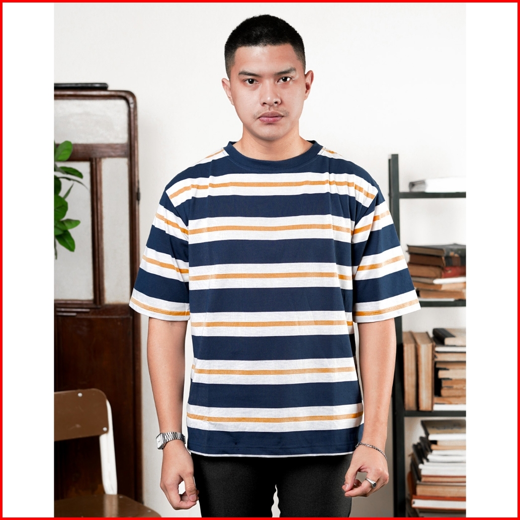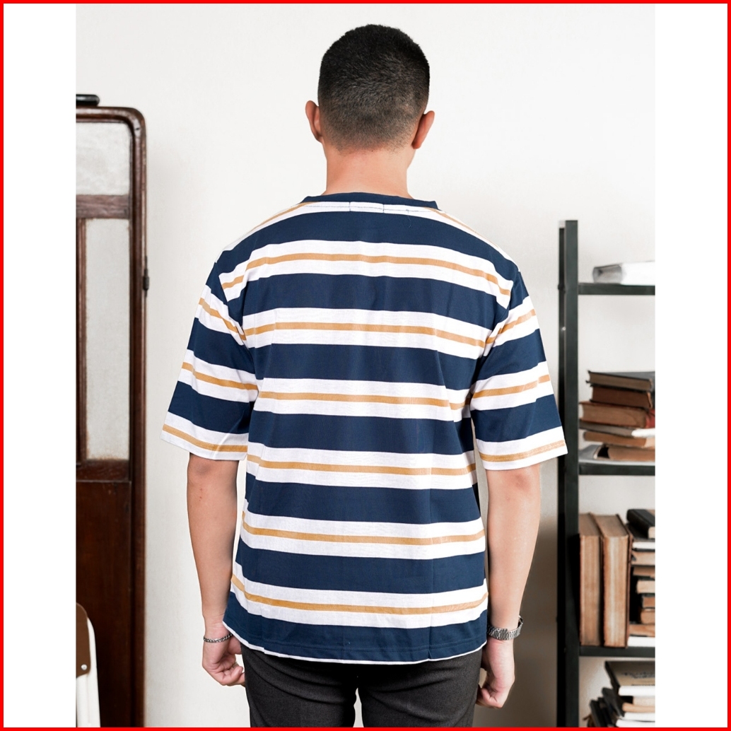 Matsuda Kaos Oversize Stripe T Shirt Katun Kinokawa Blue Teal