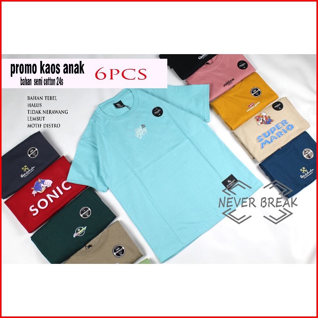 6 Pcs 100 Ribu Kaos Anak Distro Laki Laki Perempuan Premium Neverbreak