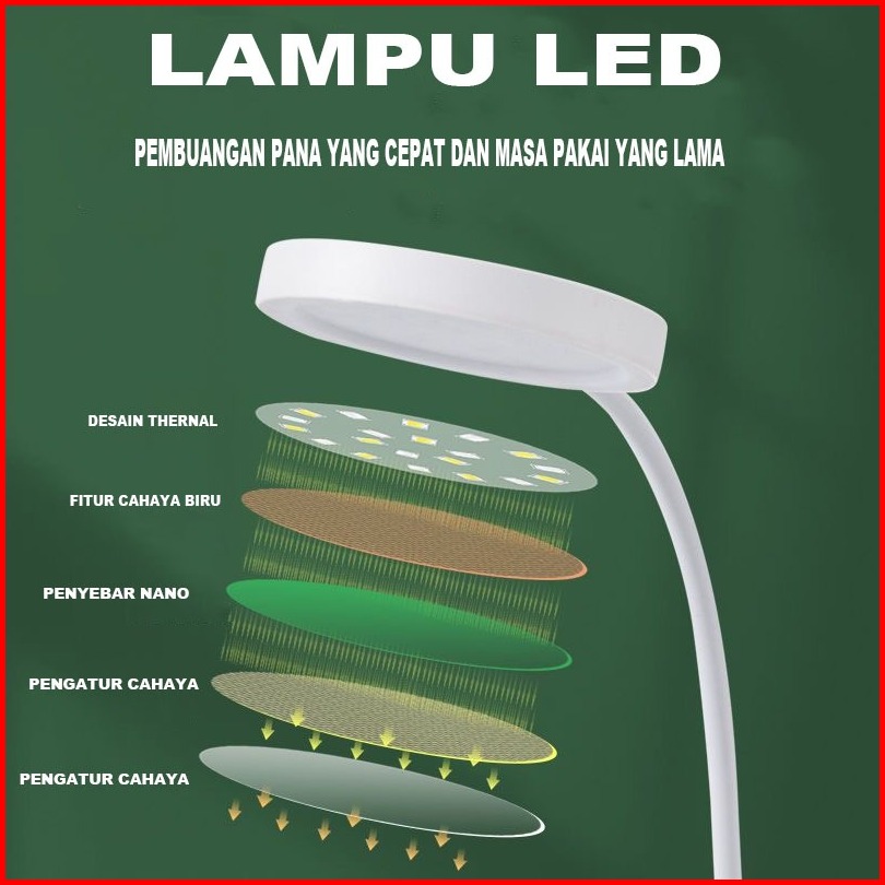 Puning Lentiven Lampu Belajar Tricolour Lampu Baca Led Usb Portable Meja Belajar Sentuh 3 Flexible Tempat Pensil