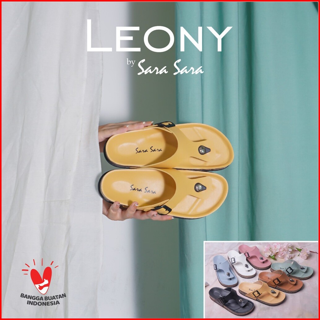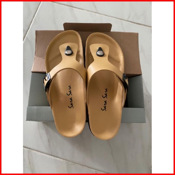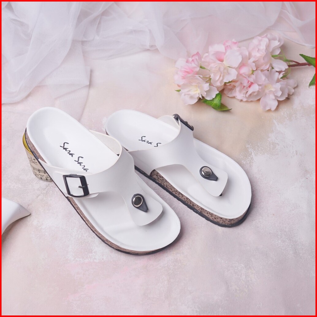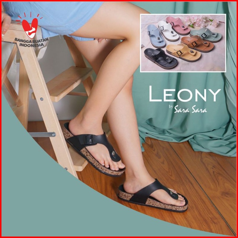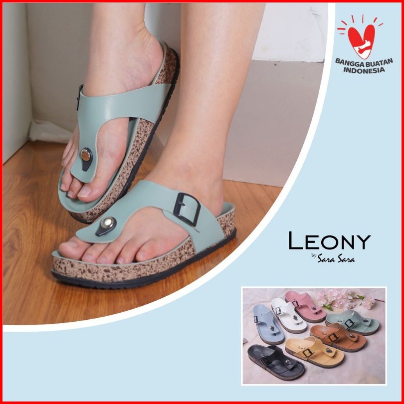Sandal Jepit Wedges Wanita Kulit Casual Sendal Flat Shoes Birken Cewek Terbaru Sara Sara Leony