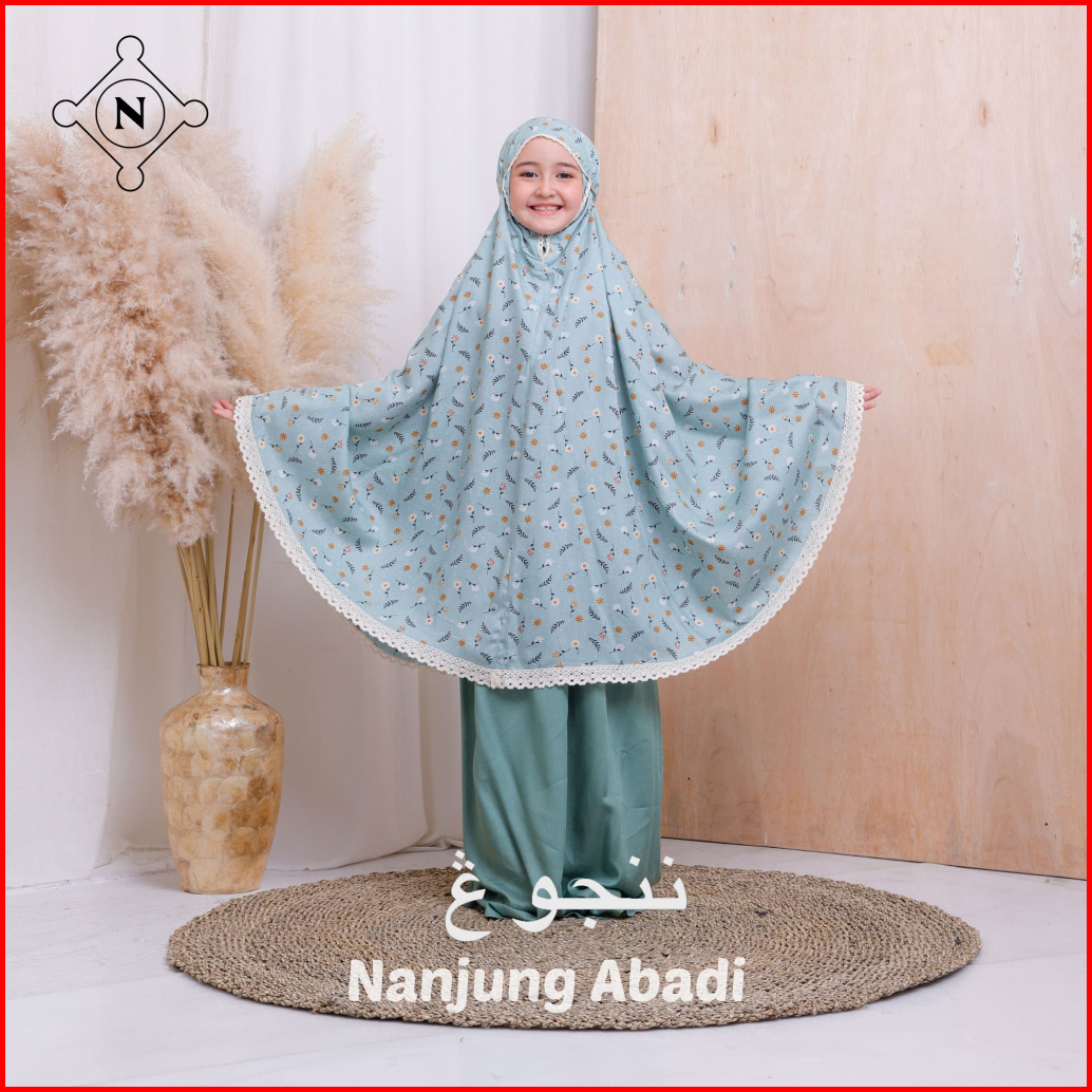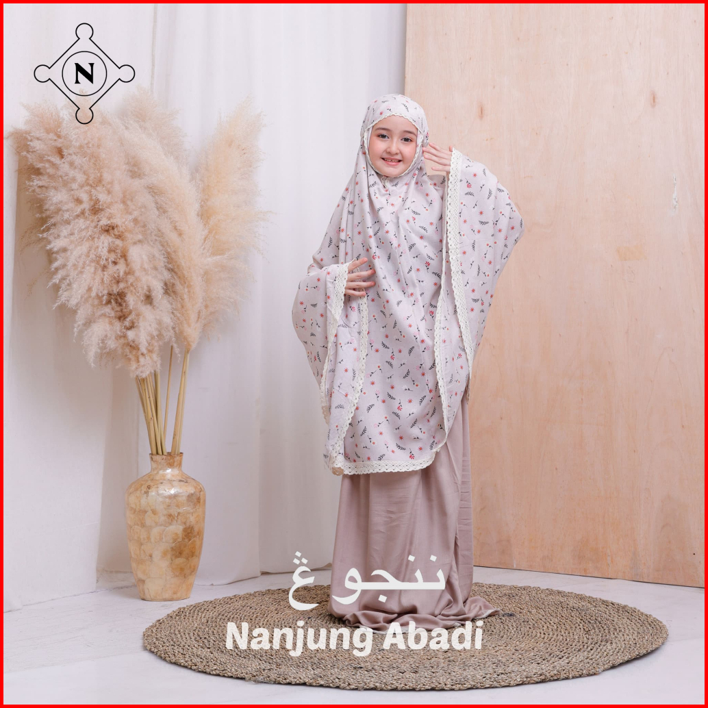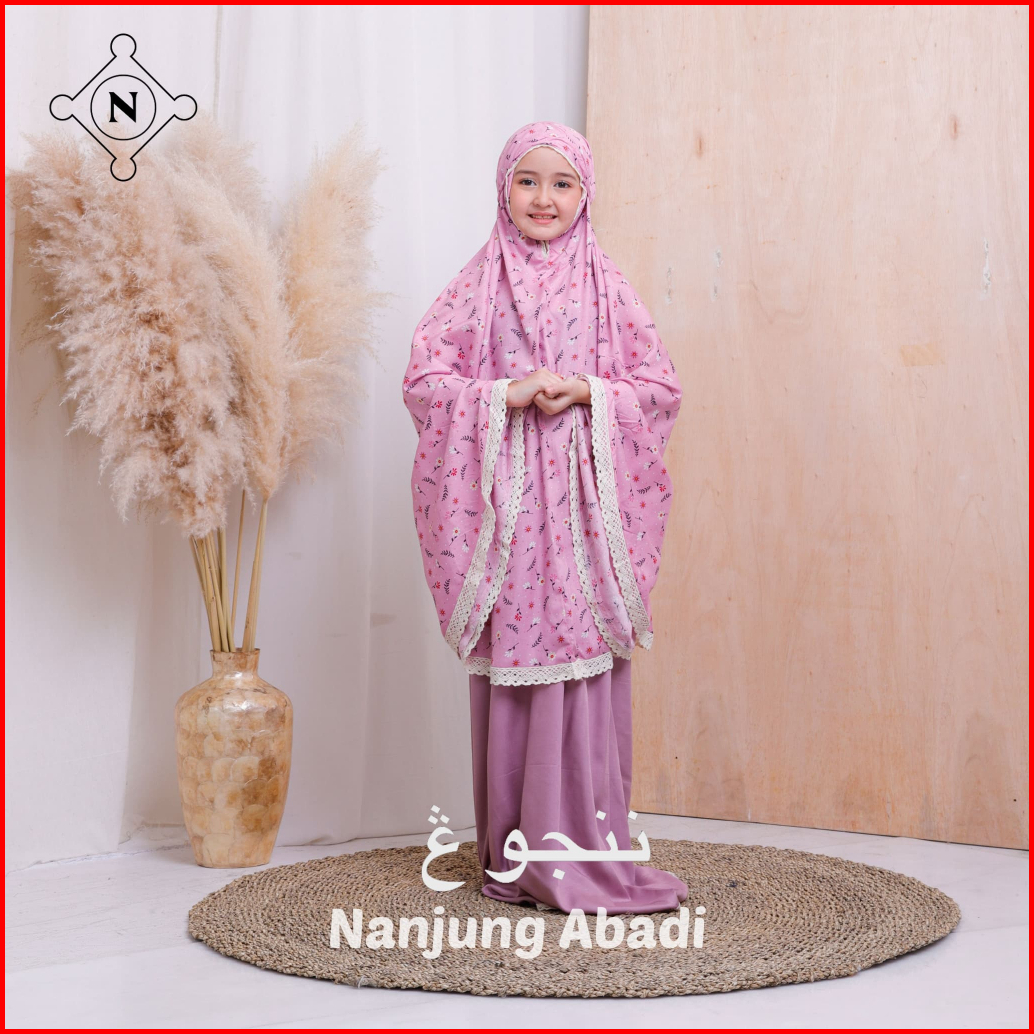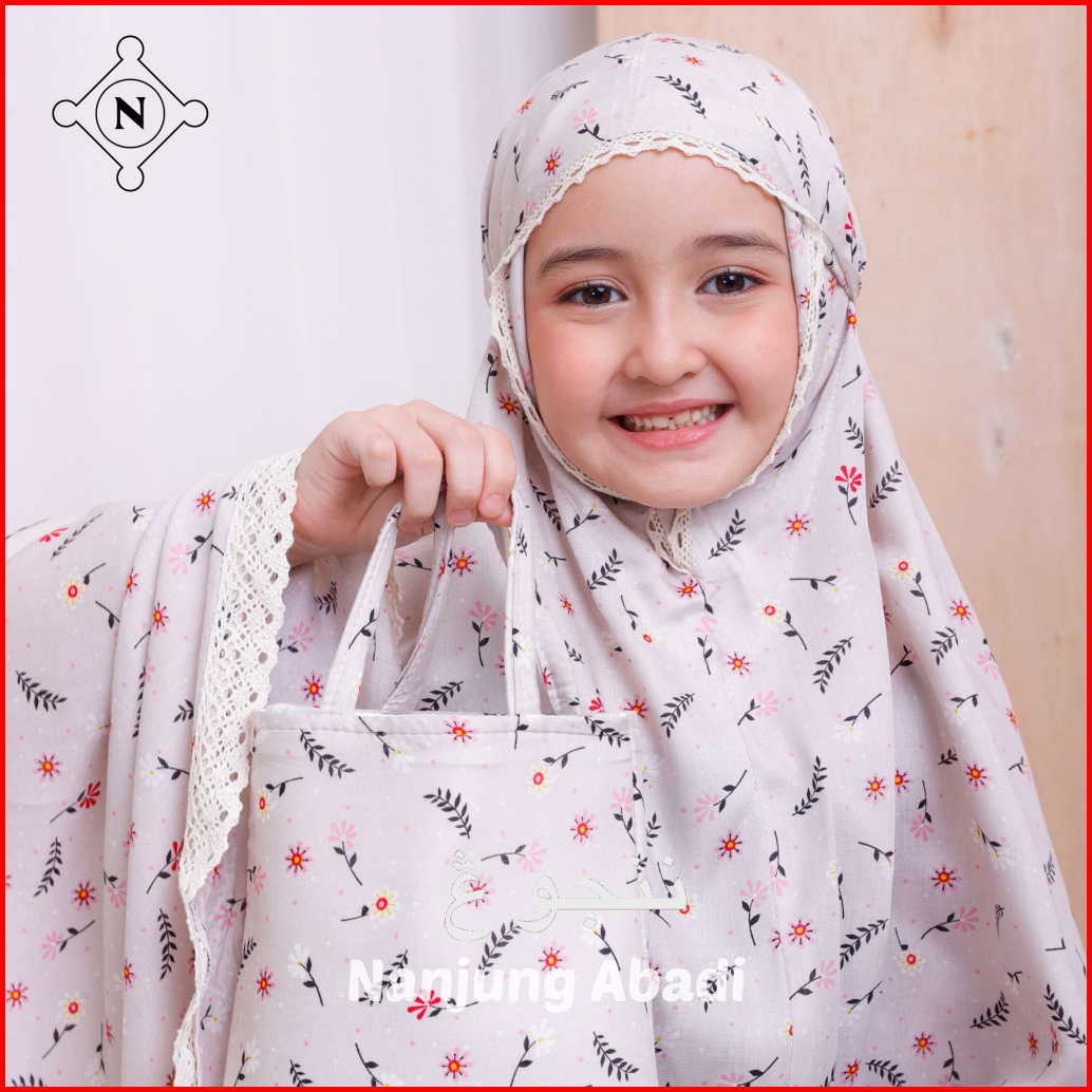 Nanjung Abadi - Mukena Anak 6-12 Tahun Rayon Premium Motif Printing Kombinasi Polos 2in1 Resleting