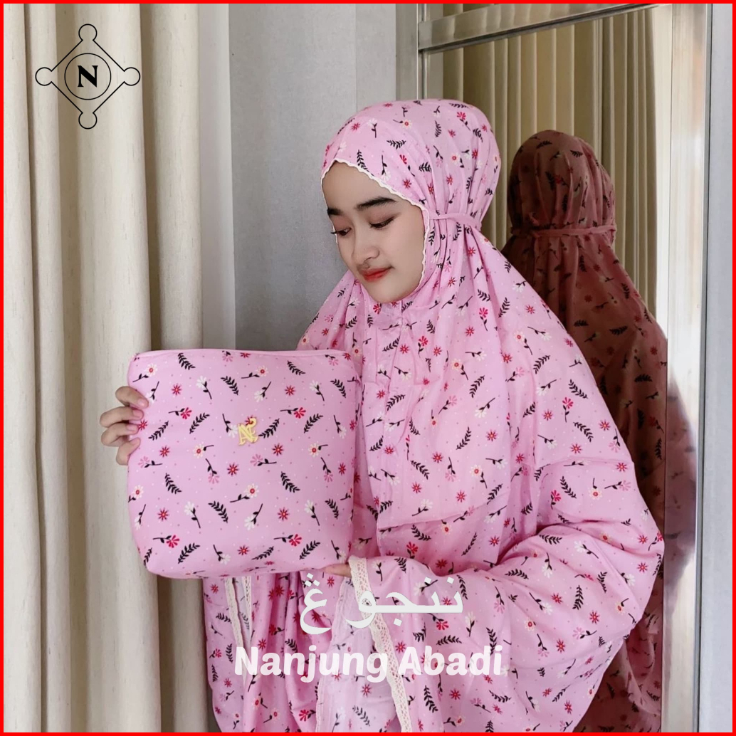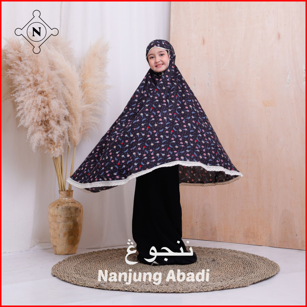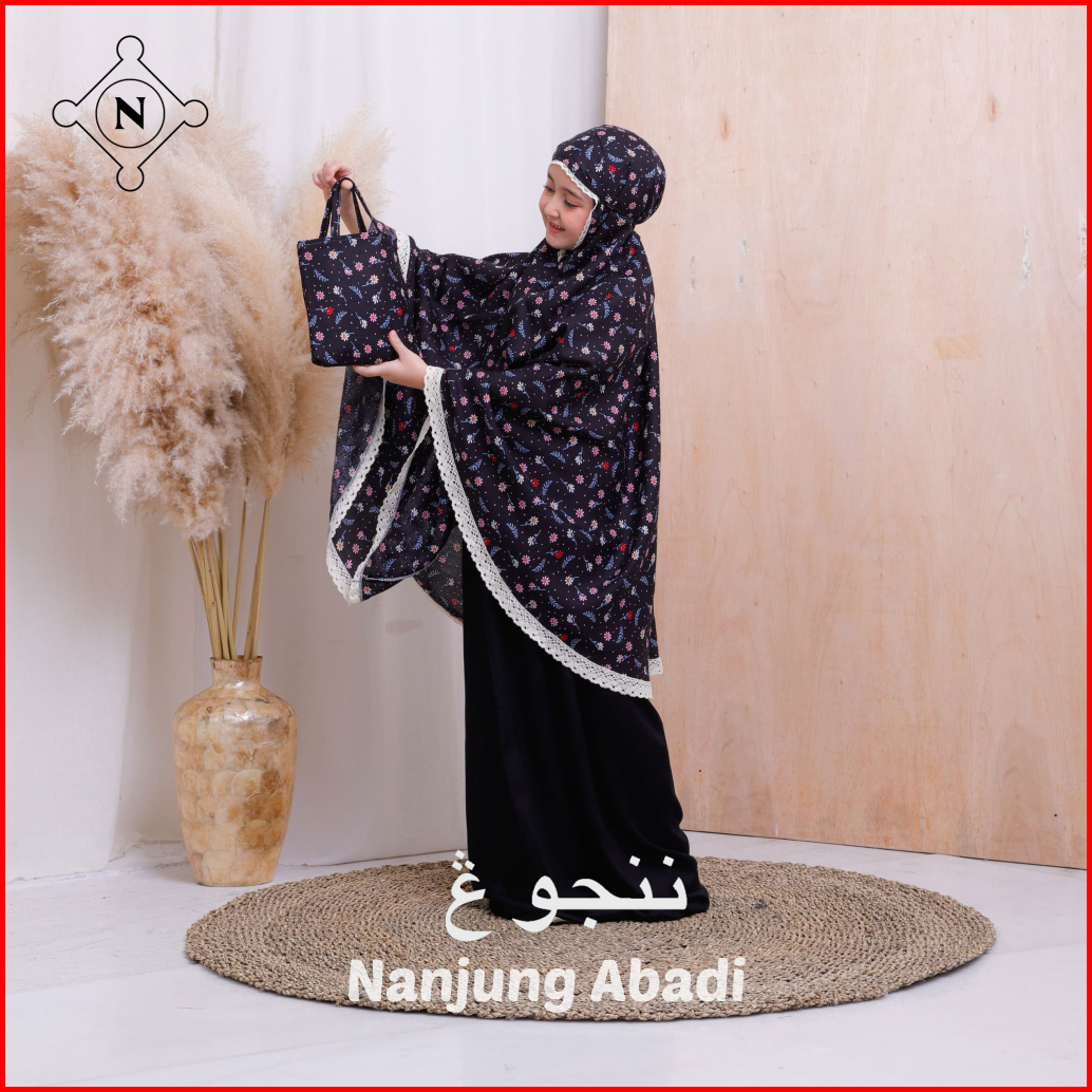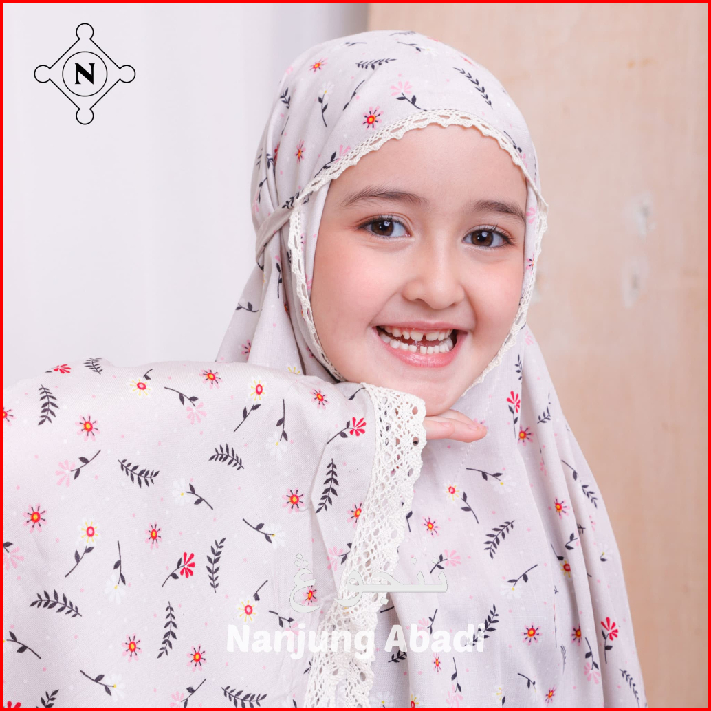 Nanjung Abadi - Mukena Anak 6-12 Tahun Rayon Premium Motif Printing Kombinasi Polos 2in1 Resleting