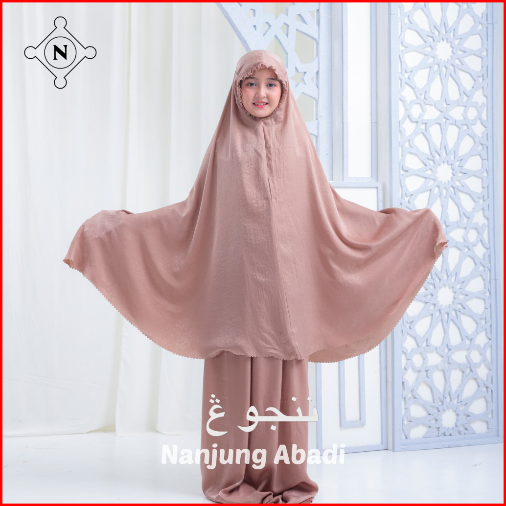 Nanjung Abadi - Mukena Anak Terbaru Tas Travel 2in1 Polos Finishing Lasercut Umur 6-12thn