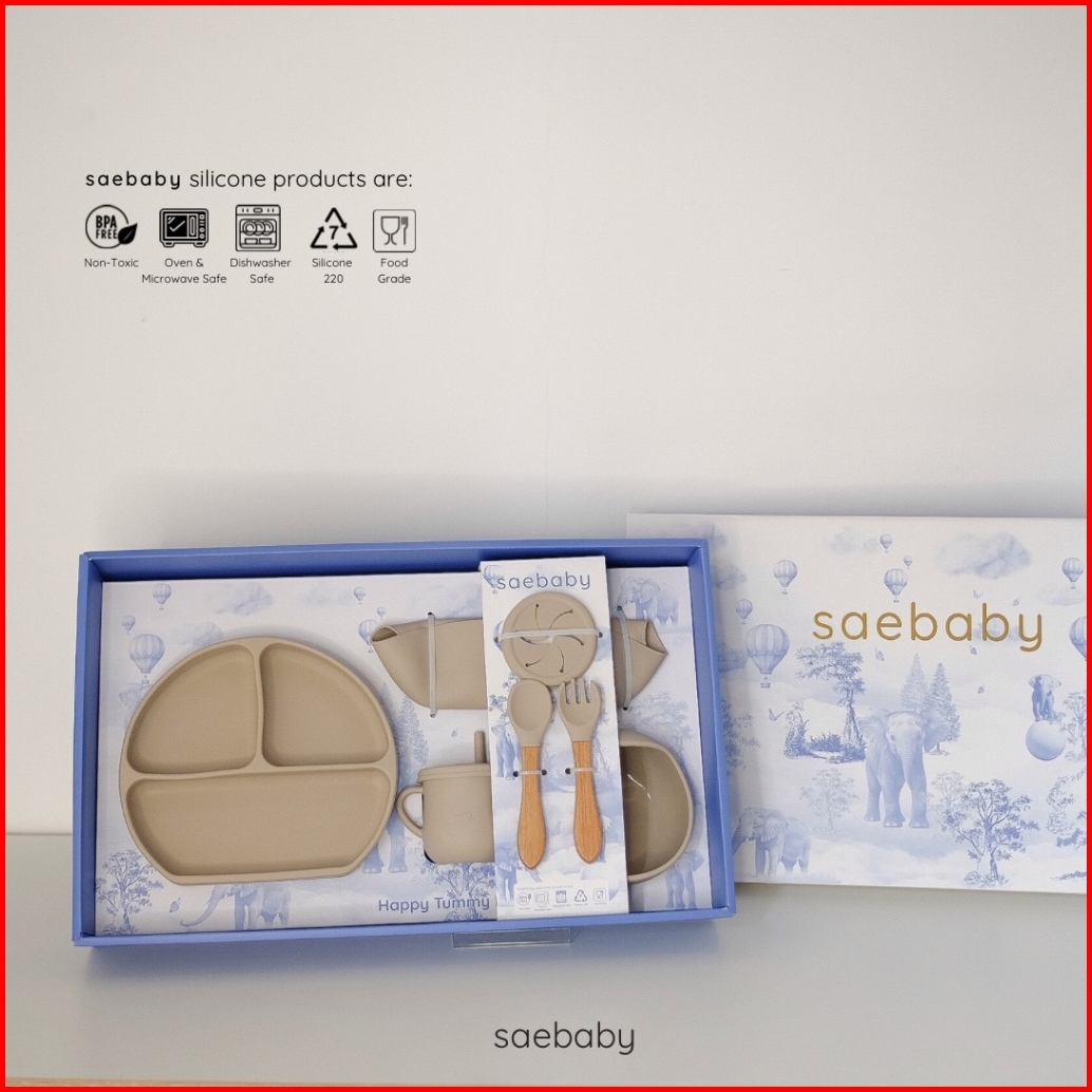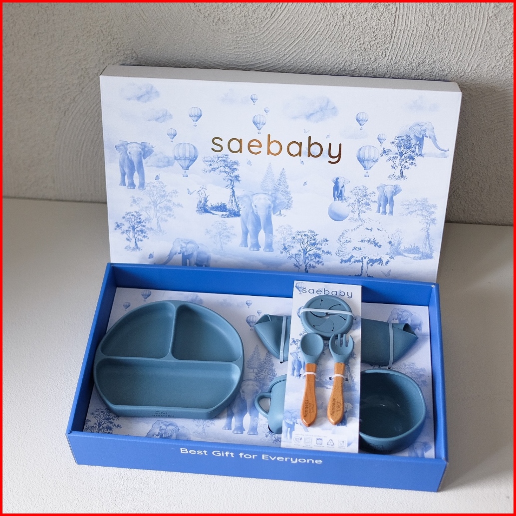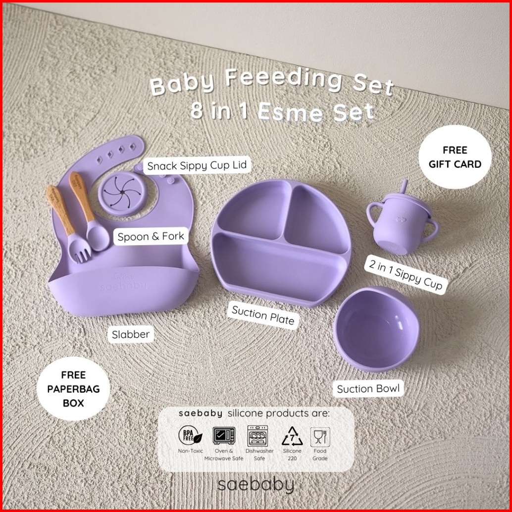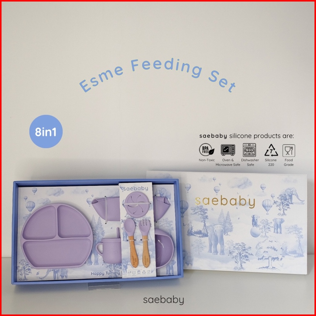 Sae Esme Set - 8pcs Baby Feeding Silicone Set Hampers Bayi Peralatan Makan Bayi Hampers Lahiran Alat Makan Bayi