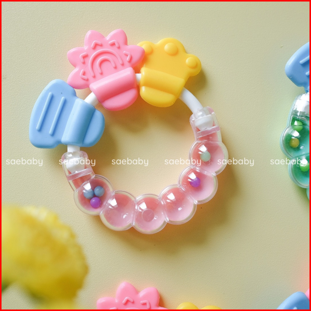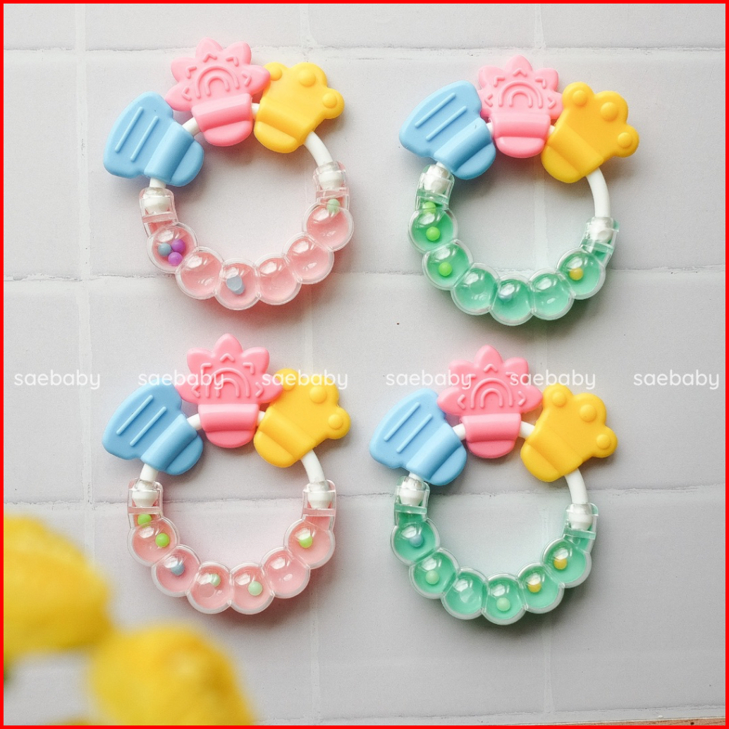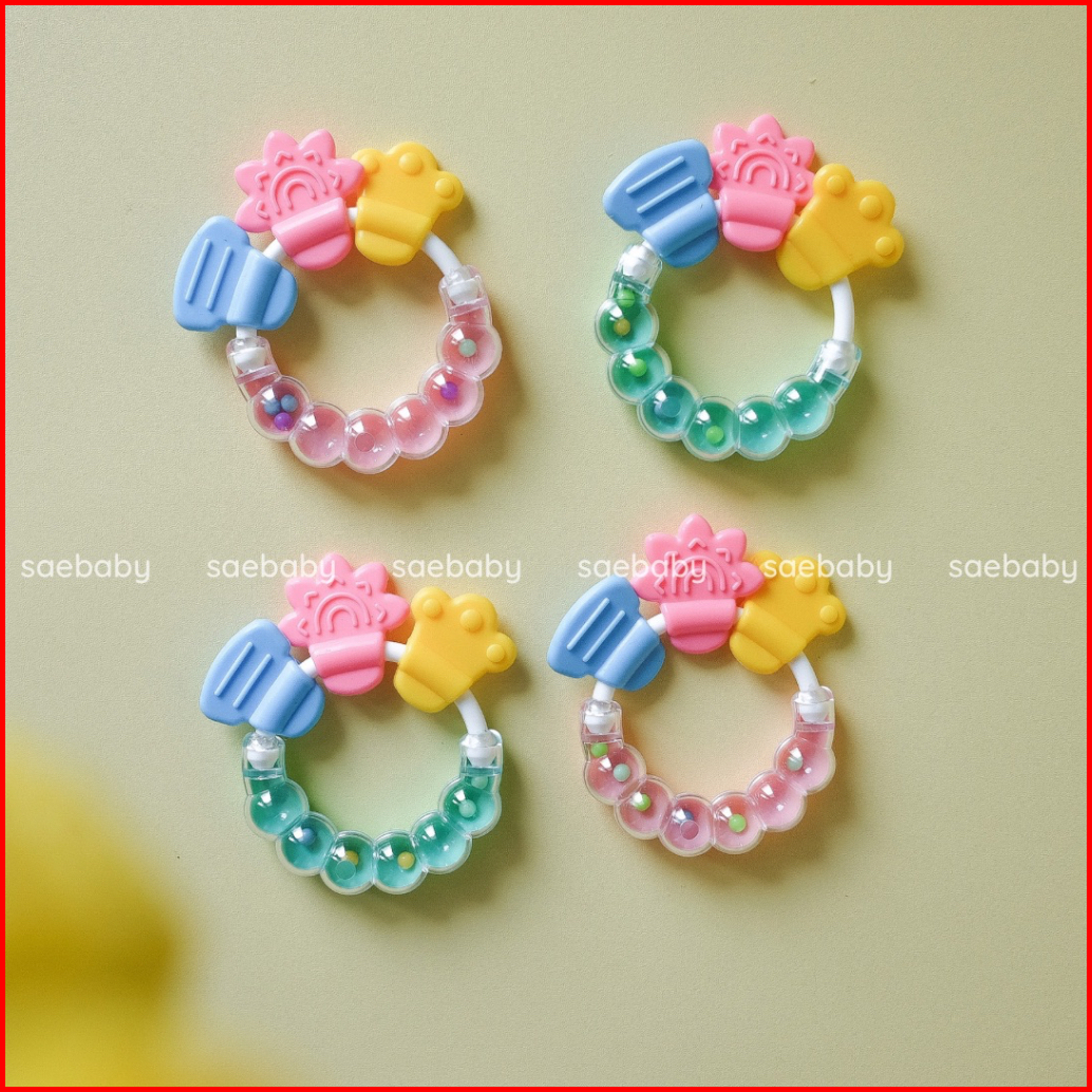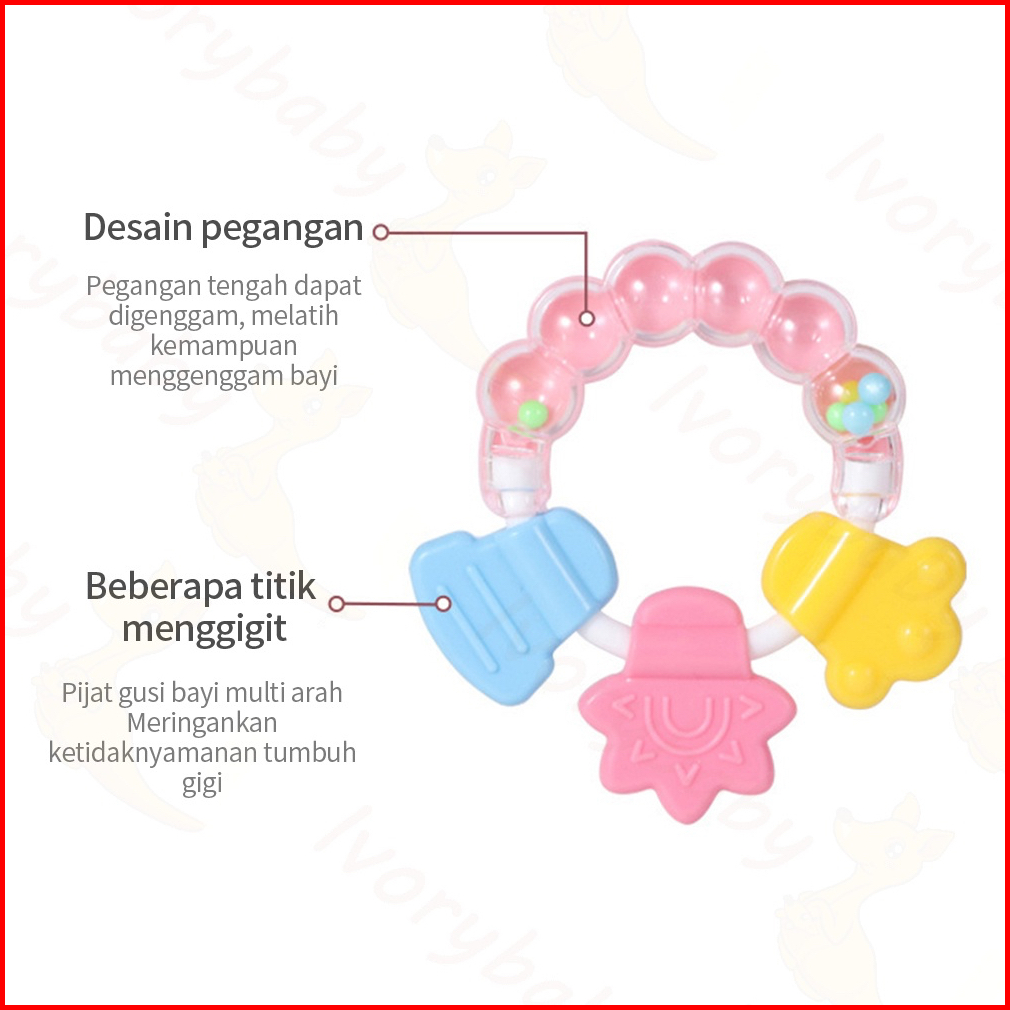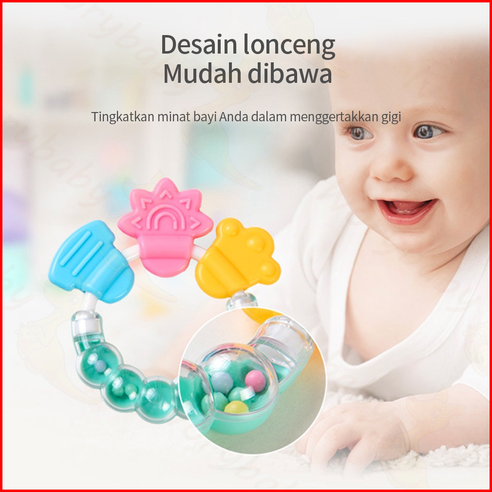 Gigitan Bayi Silikon Kerincingan Bulat Teether Rattle Bayi