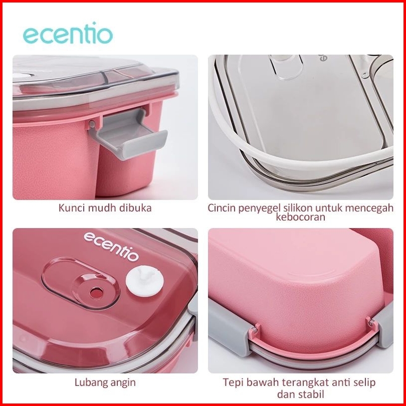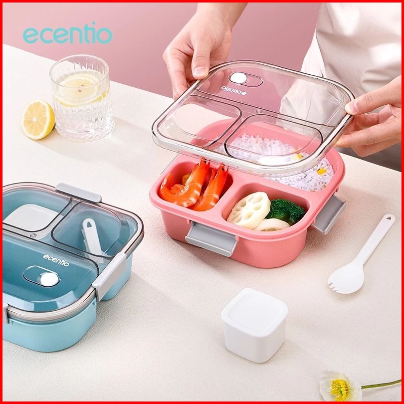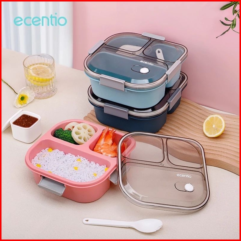 Ecentio Kotak Makan Lunch Box 3 Grid 1100 Ml Kotak Bekal Misting Anti Bocor