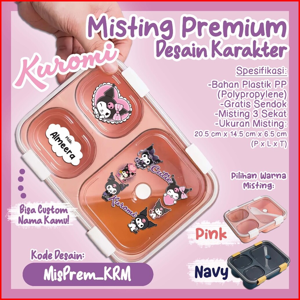 Misting Lunchbox Kotak Makan Bento Box Custom - Desain Karakter Kartun Kesukaan Anak Favorit Kartun Kelinci Kuro Mi Misp