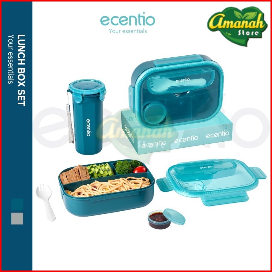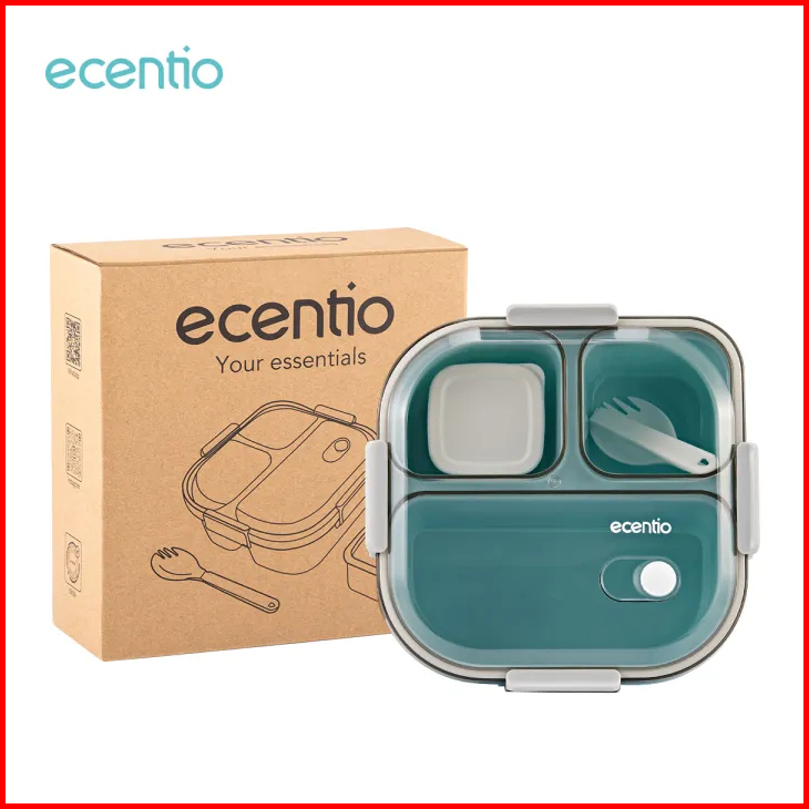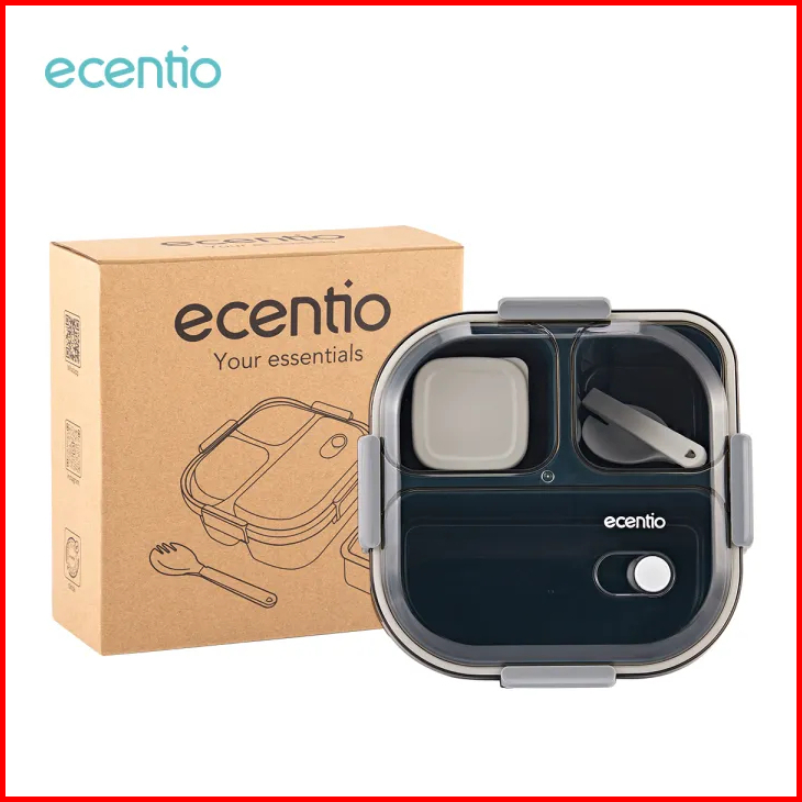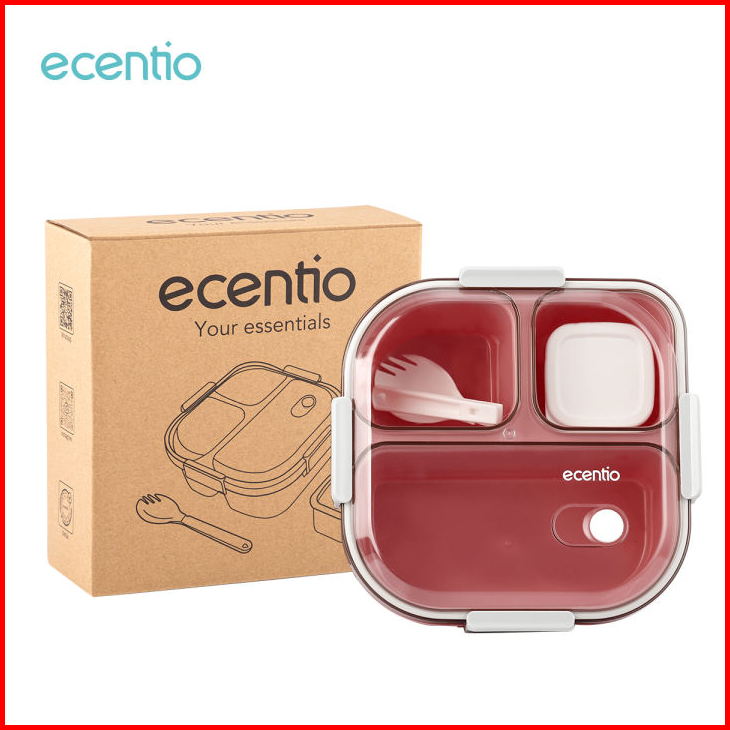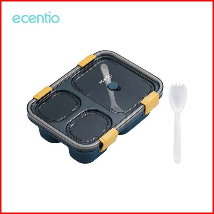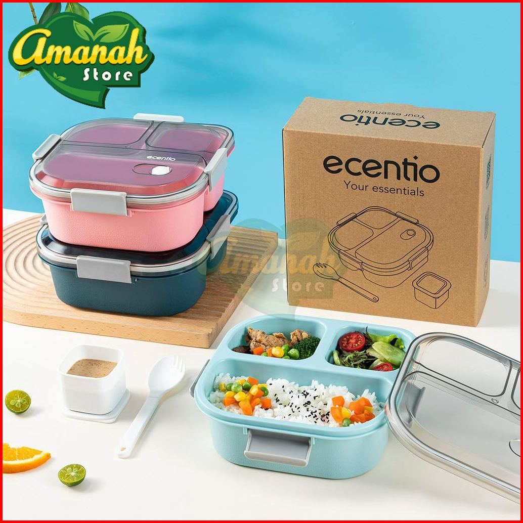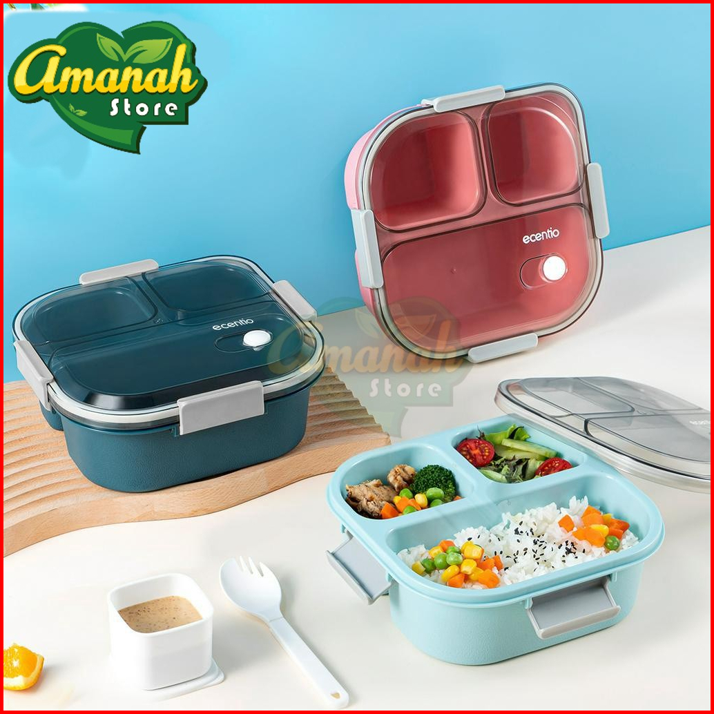 Ecentio Lunch Box Kotak Bekal Anti Tumpah 3 Grid 850ml Kotak Makan Wadah Bekal Anti Tumpah Kotak Sup 100ml Free Sendok