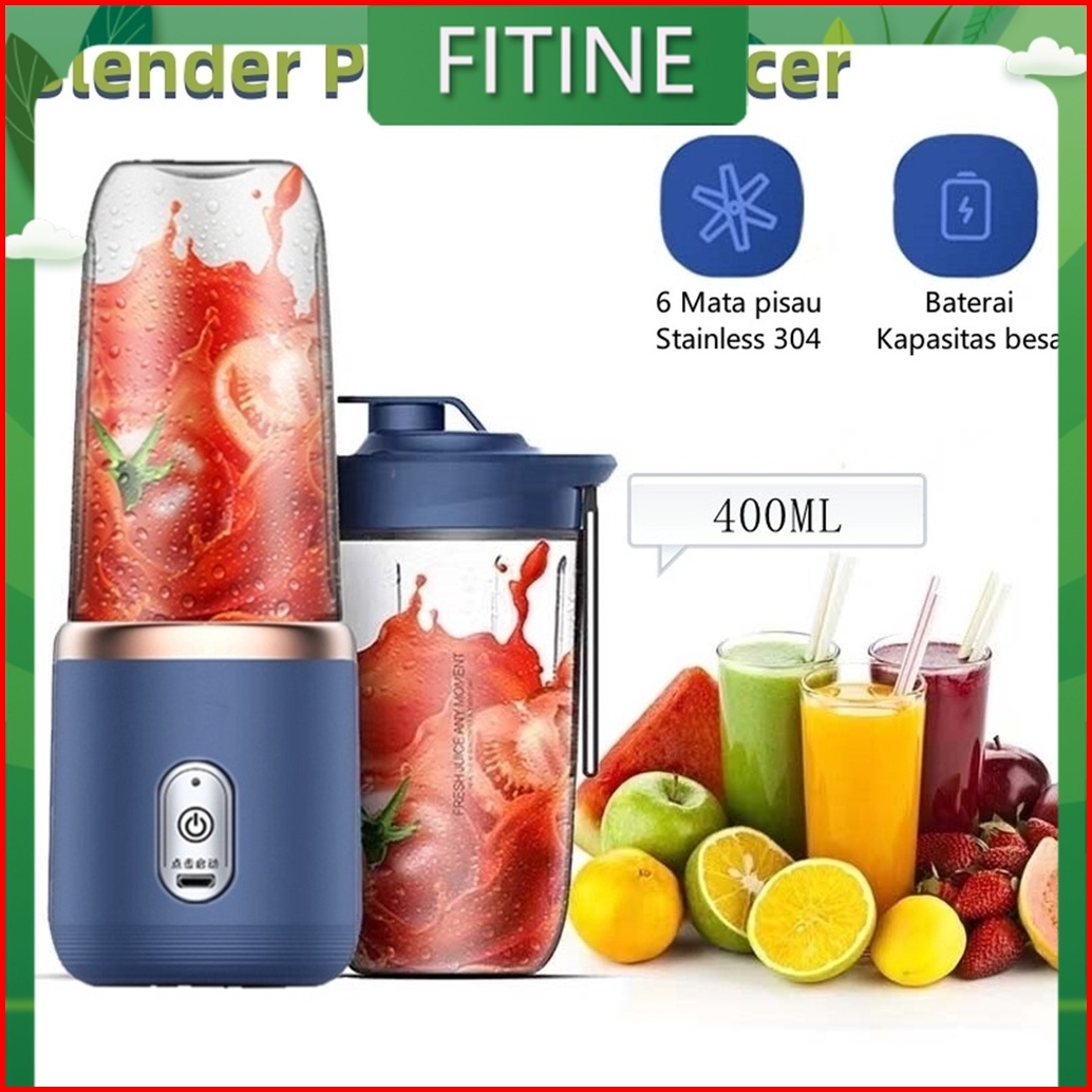 Fitine Blender Portable Mini Juicer 6 Mata Pisau 400ml Blander Jus Buah Port Charger Usb Electric Blender Kapsul