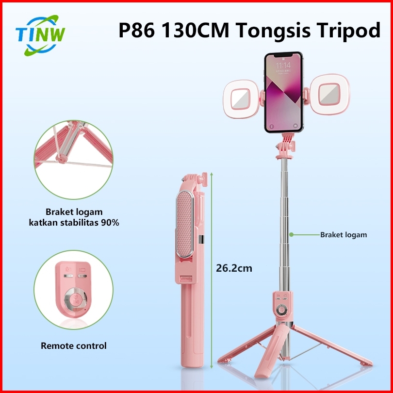 Tinw P86 130cm Selfie Portable Tongsis Tripod 7 In 1 Bluetooth Remote Control Flexible 130cm