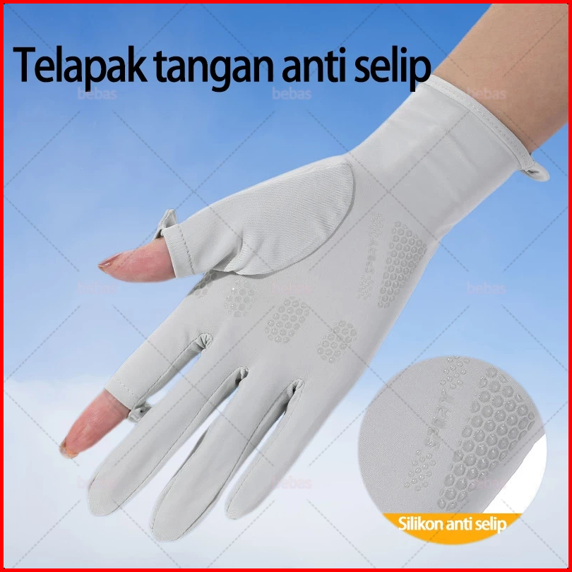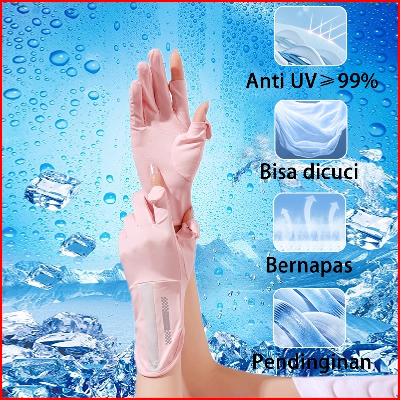 Stok Ready Sarung Tangan Anti Uv Sarung Tangan Montor Sarung Tangan Hitam Wanita Kaos Tangan Panjang 28cm Kain Sutra Es