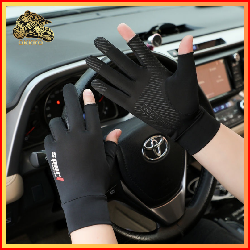 Tipis Sarung Tangan Motor Anti Air Touch Screen Setengah Jari Gloves Sepeda Pria Wanita Ice Silk Gloves Setengah Jari Ha