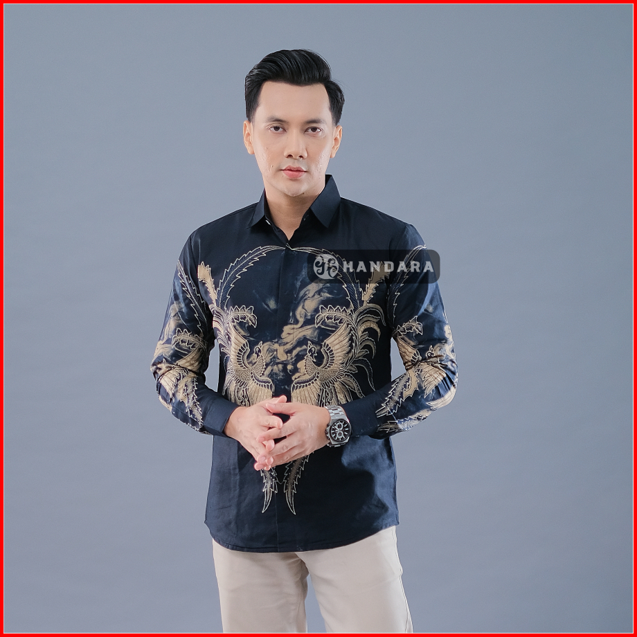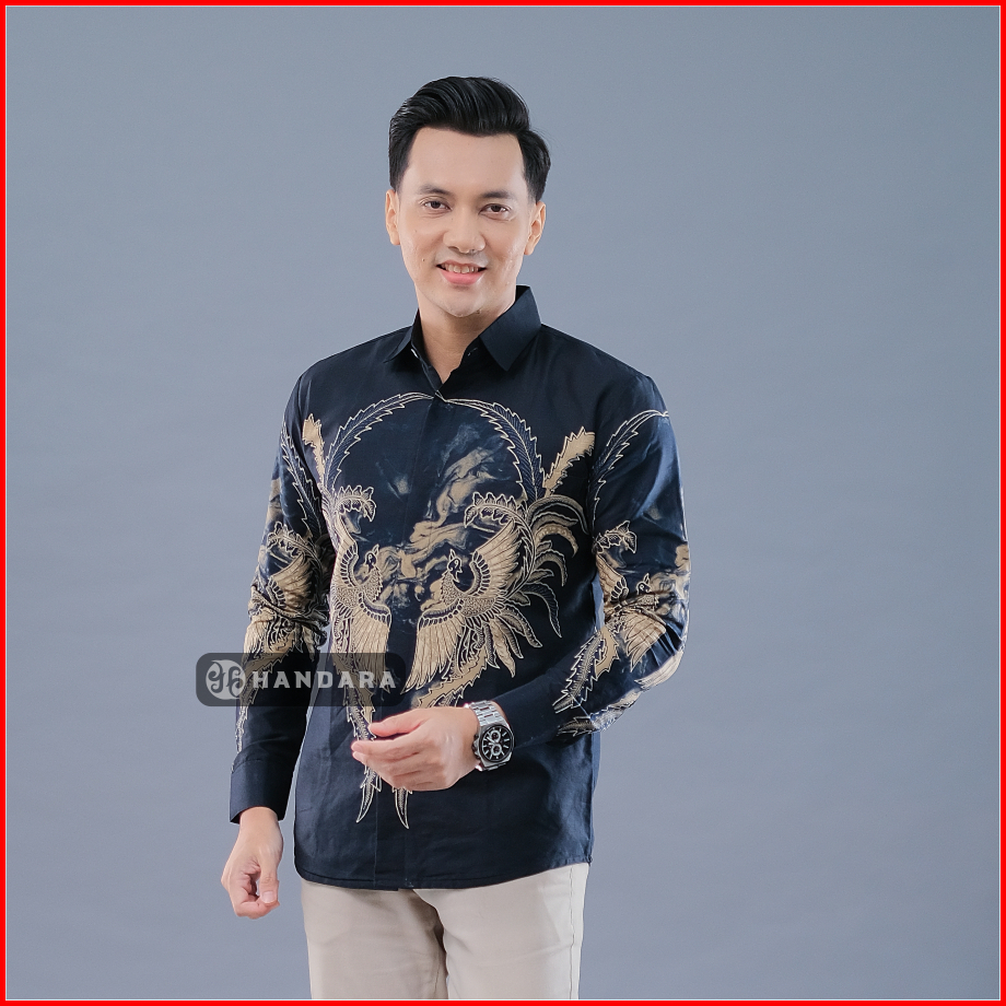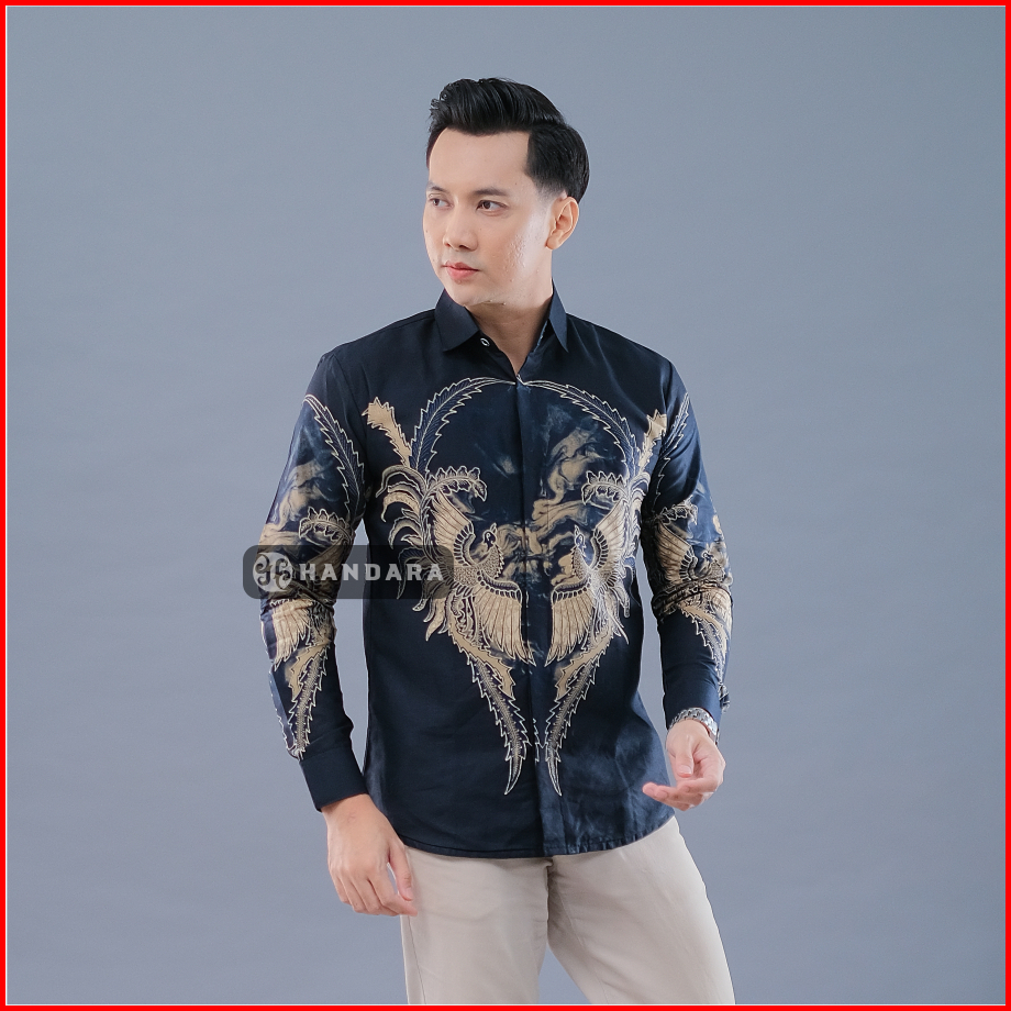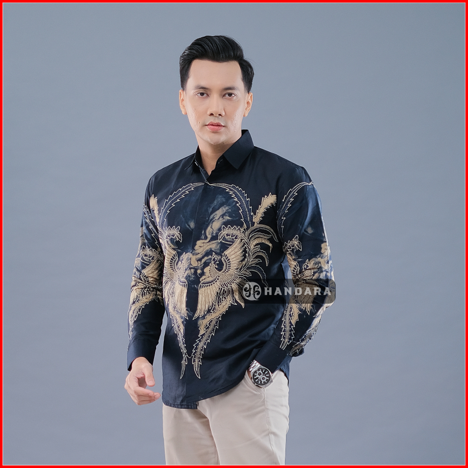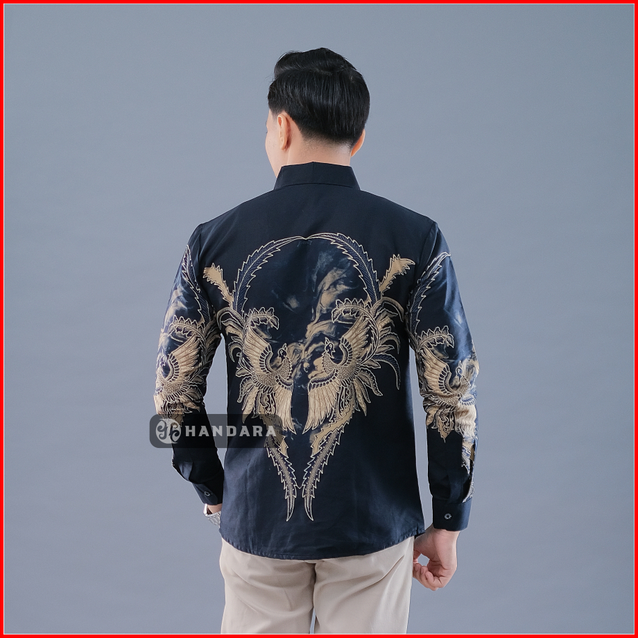 Handara Batik Premium Pria Lengan Panjang Slim Fit Furing - Narpati Hitam