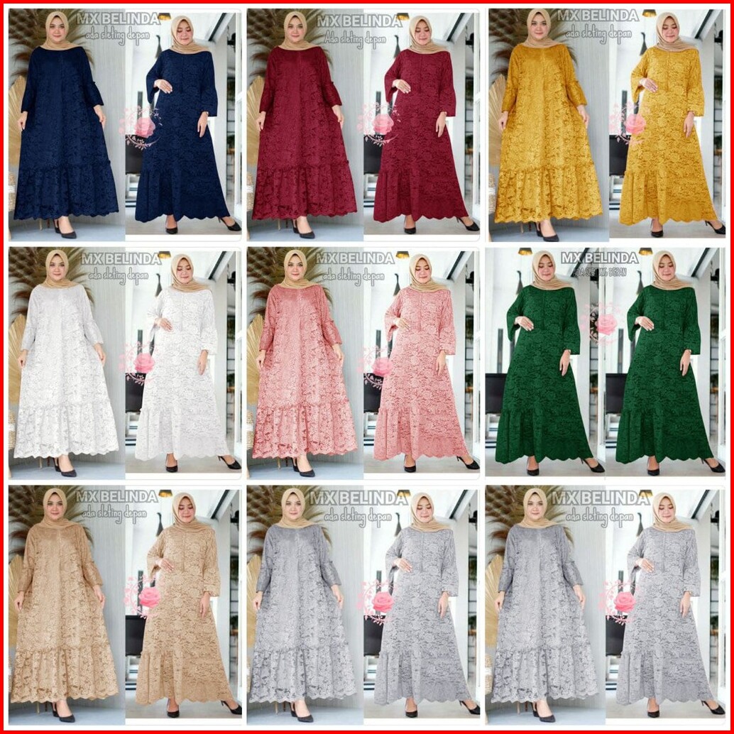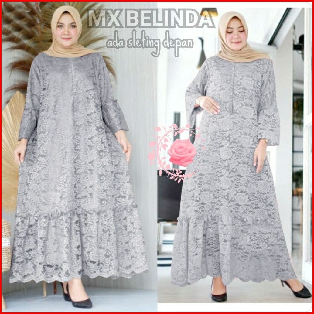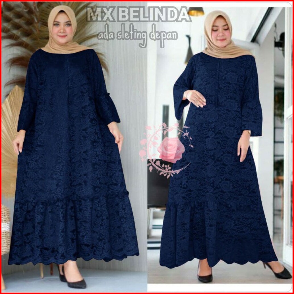 Indobest Mx Belinda Jumbo 5xl 4xl 3xl 2xl Xl Busui Brukat Gamis Dress Wanita Baju Pesta Lengan Pjg