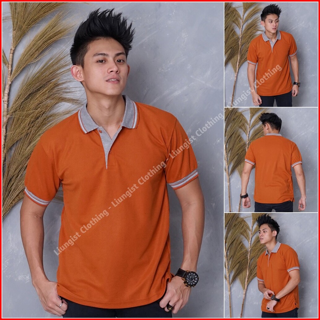 Kaos Polo Unisex Merah Bata Kerah Abu Kaos Kerah Poloshirt Polo Shirt Pendek