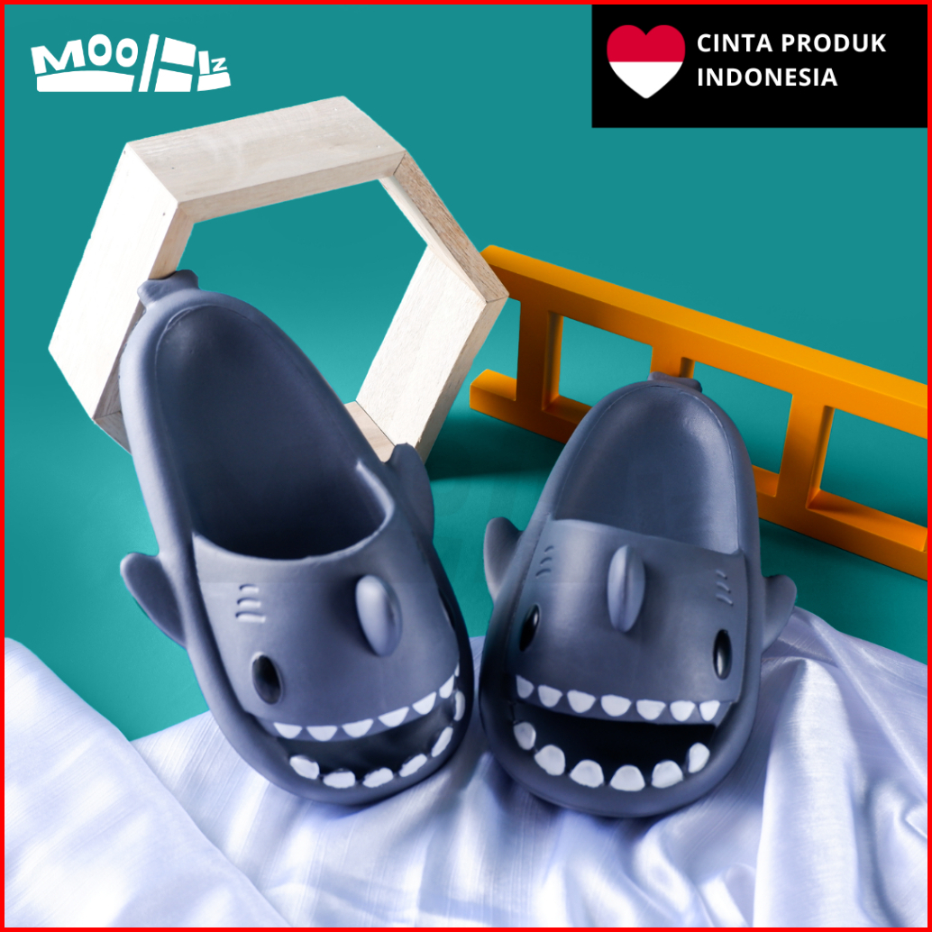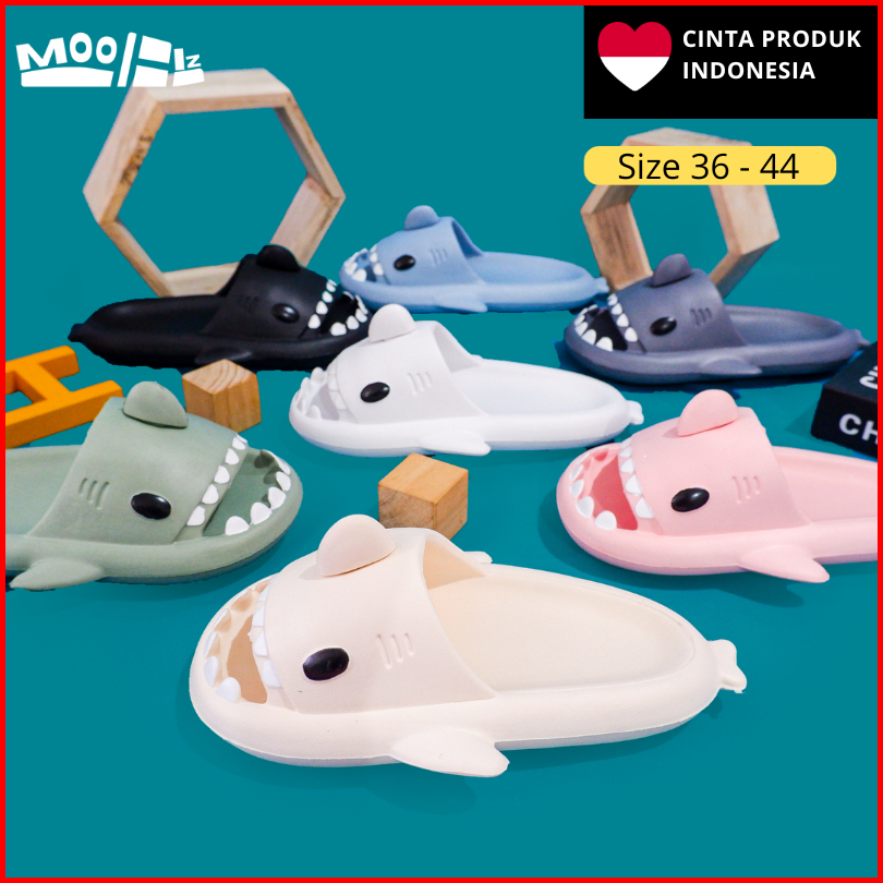 Moobiz.id Sendal Hiu Sandal Shark Unisex Sandal Karet Karakter Couple Size 36-44 Pria Wanita Dewasa