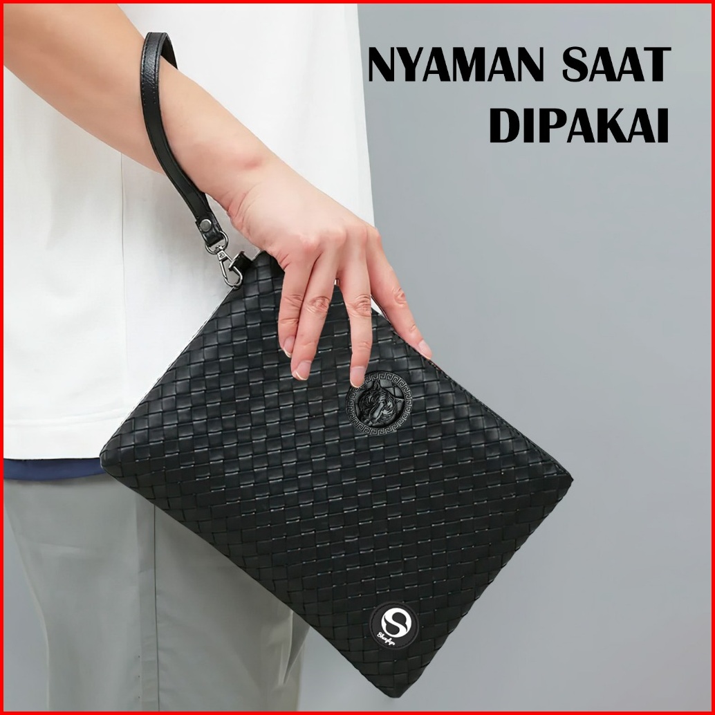 Dompet Clutch Hand Woven Tas Tangan Pria Wanita Tas Ipad Anyaman Import Terbaru - Wy 101
