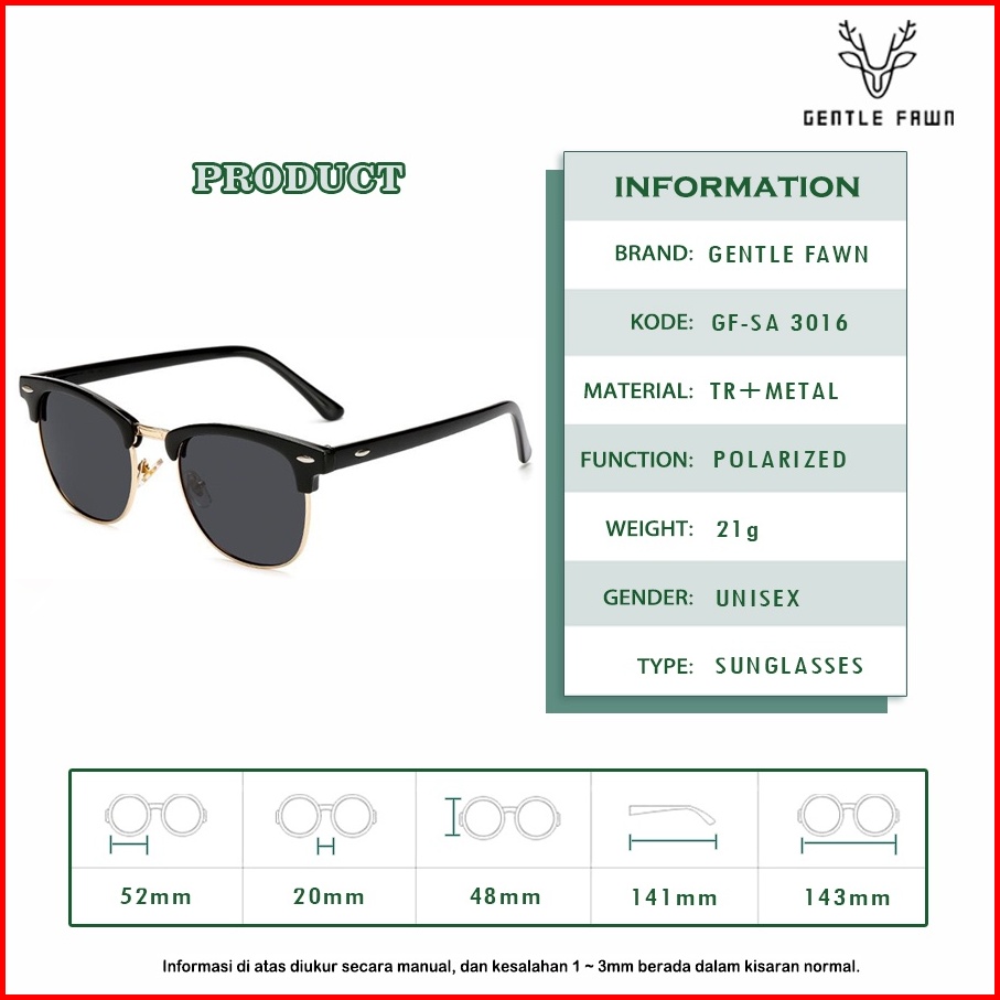 Gentle Fawn Kacamata Hitam Sunglasses Polarized Style Kotak Tr Metal Model Club Master Fashion Pria Wanita 3016 4246