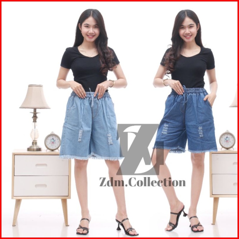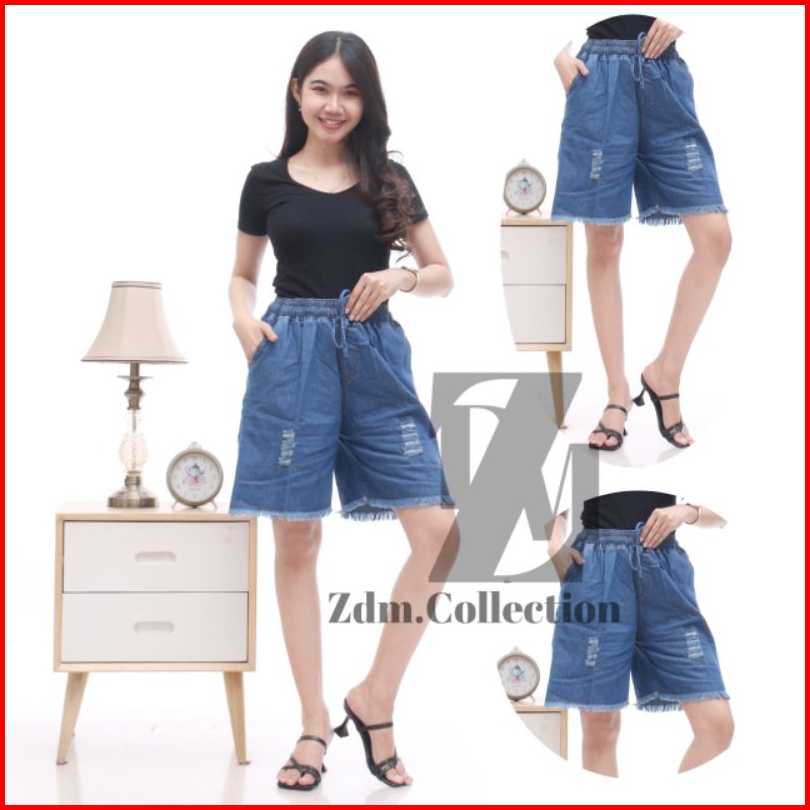 Celana Pendek Wanita 3 4 Standar Jumbo Rawis-sobek Lightblue Blue All-size Fit To M L Xl Xxl