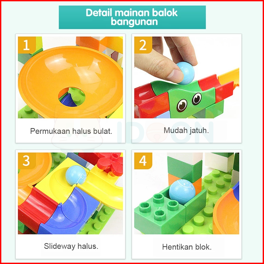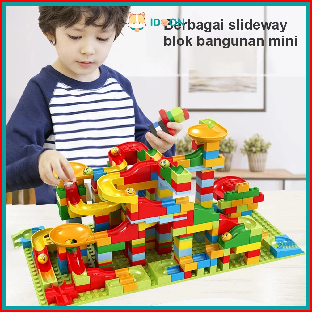 Idoon 168 Pcs Mainan Building Brick Edukasi Anak Marble Run Race Maze Block Balok Susun Track Slide Ball