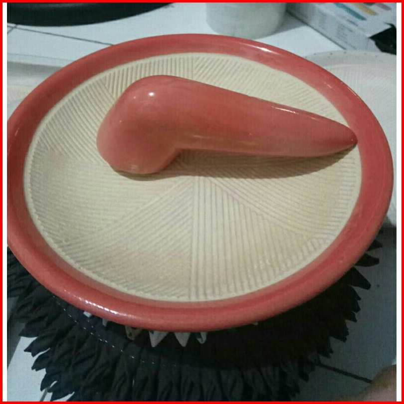 Cobek Keramik Ukuran 18cm Satu Set Dengan Ulekannya.