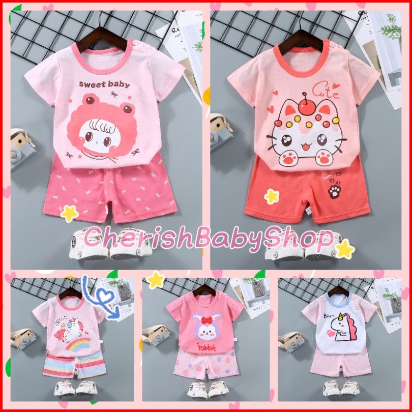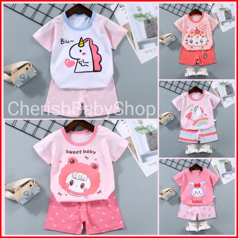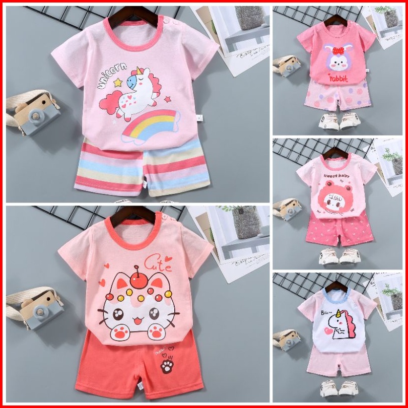 Baju Anak Perempuan 1set Baju Bayi Perempuan Stelan Bayi Import Setelan Anak Bayi Motif Karakter Piyama Anak Bayi