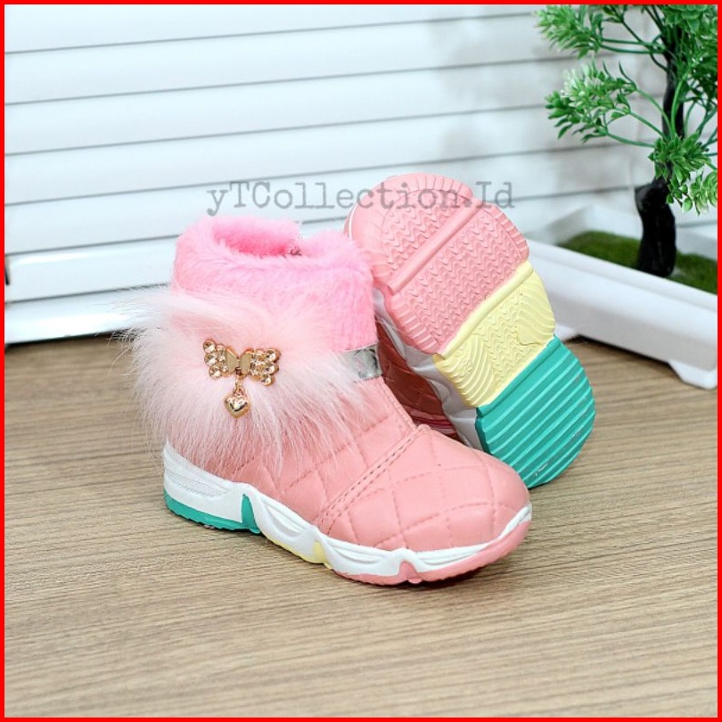 Sepatu Boots Anak Perempuan Bulu Dengan Sol Pelangi