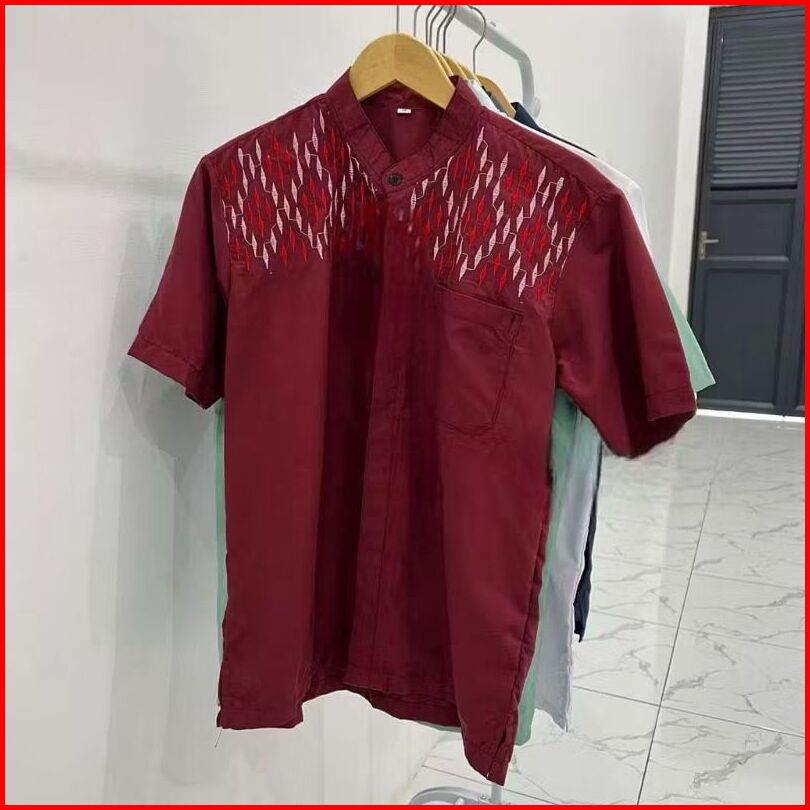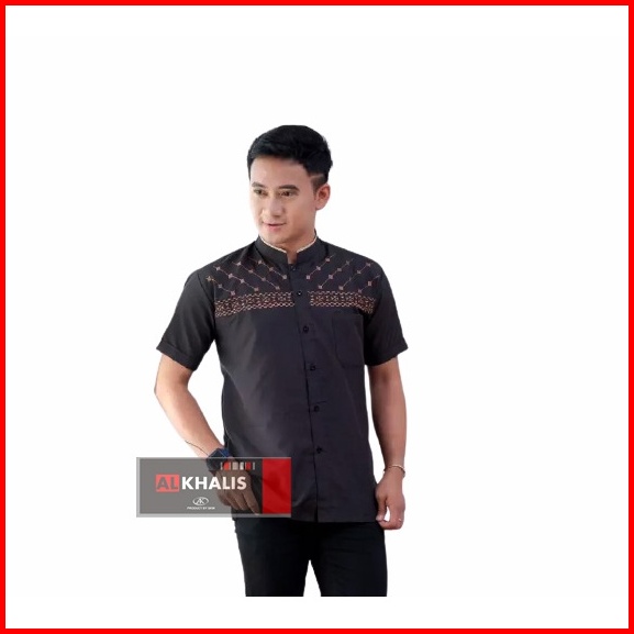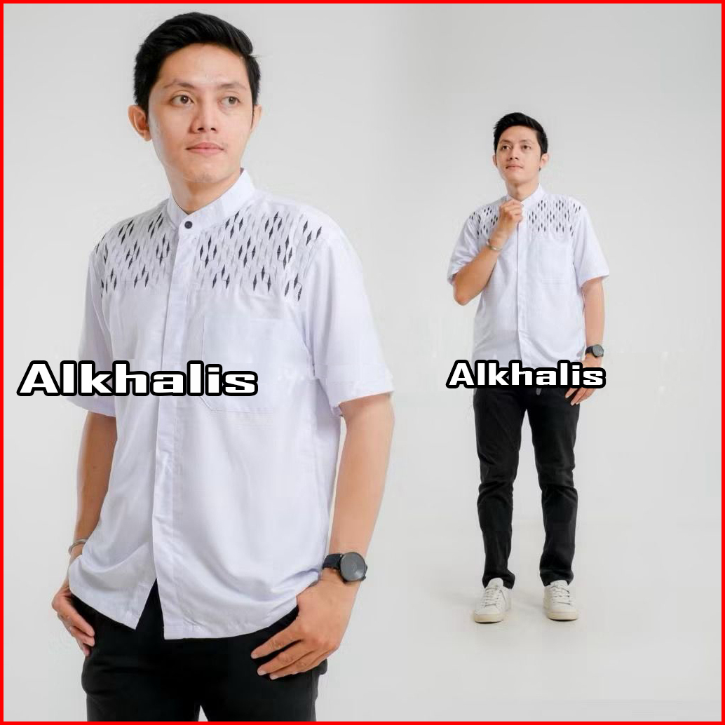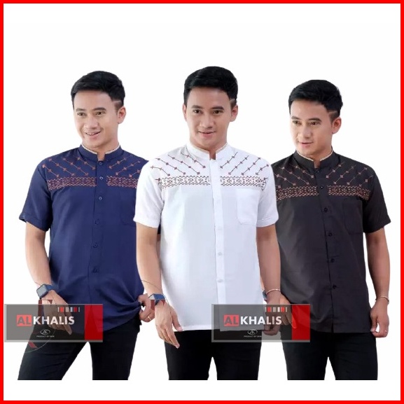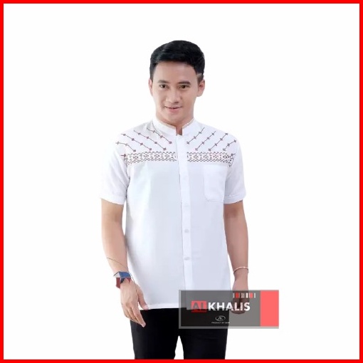 Baju Koko Bordir Mewah Lengan Pendek Alkhalis