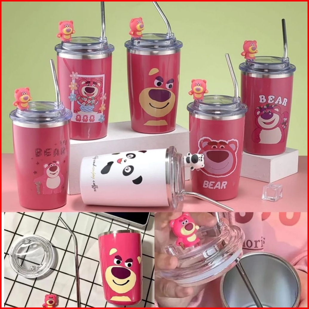 Termos Tumbler Lotso Strawberry Bear 500ml Botol Minum Mug Cangkir Kopi Termos Stainless Steel
