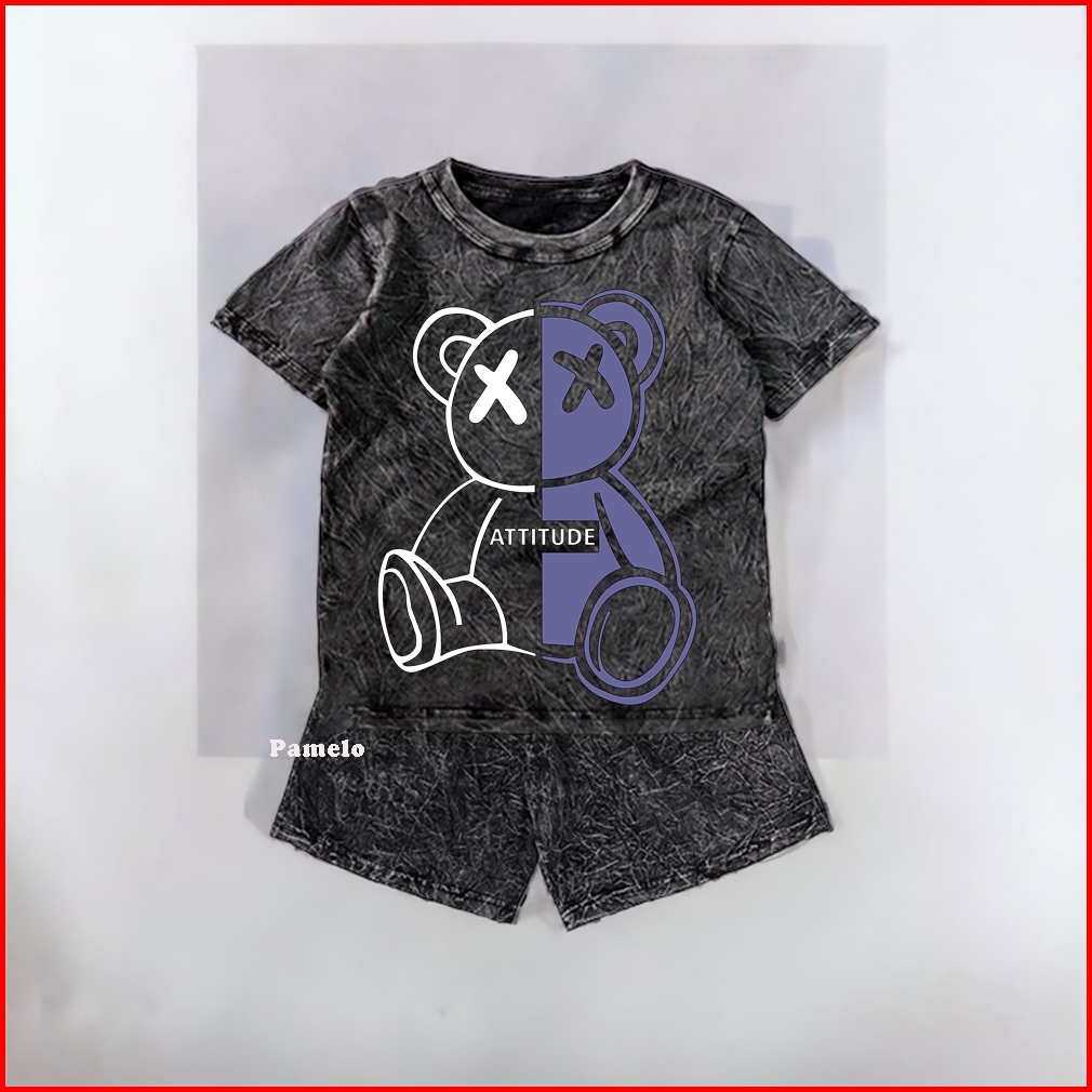Stelan Wash Anak Unisex Karakter 1 Anak Bear 1 One Set Anak Stone Wash Set Distro Basic Anak Pria Dan Wanita