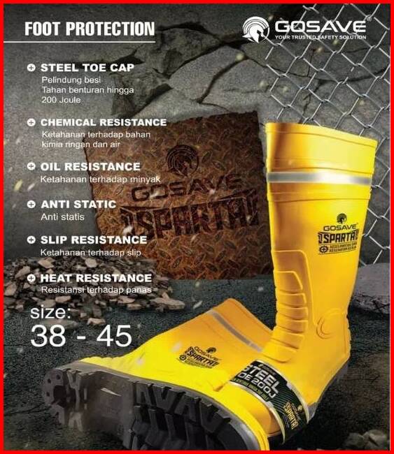 Sepatu Boot Rubber Safety Gosave Sparta Karet Ujung Besi Steel Toe Proyek