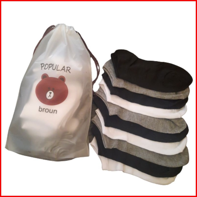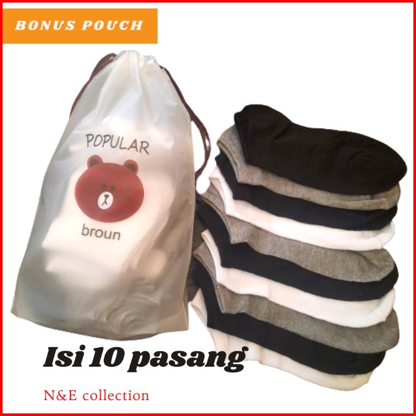 10 Pasang Kaos Kaki Import Kaos Kaki Pendek Angkle Sock Bonus Pouch