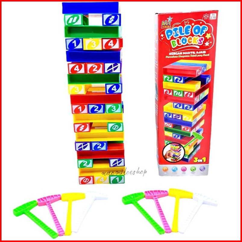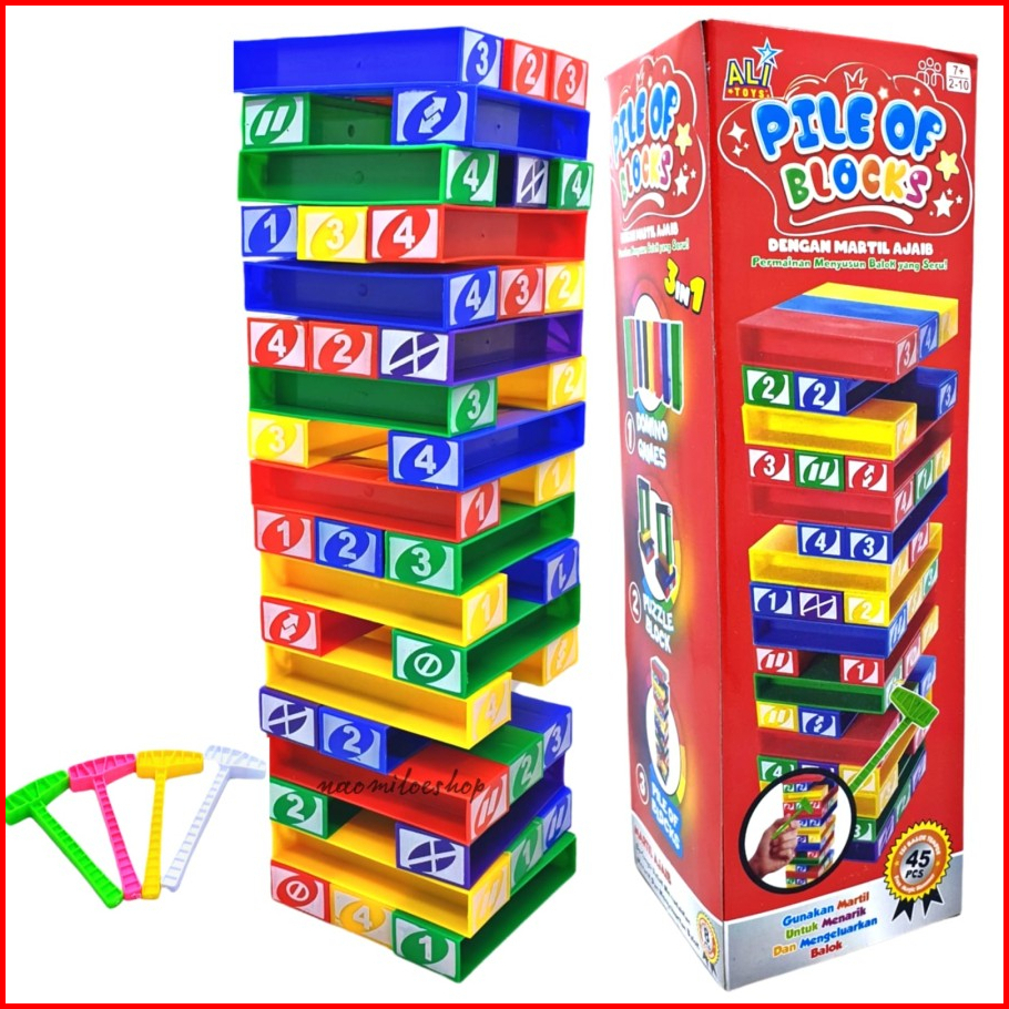 Pile Of Blocks 3in1 Susun Tower Blocks Mainan Anak Stako Kayu Balok 45pc Mainan Edukasi