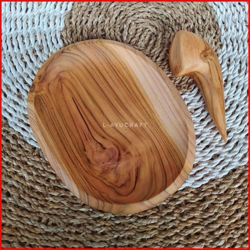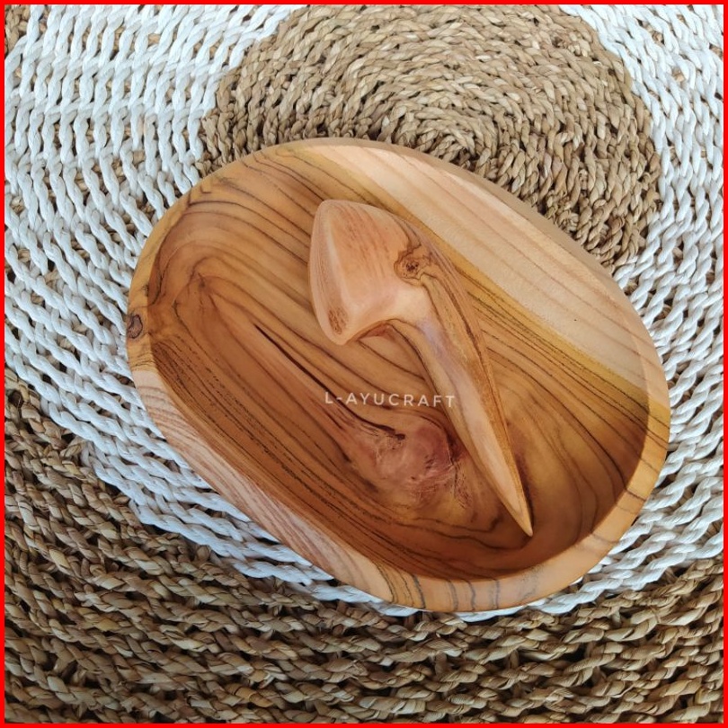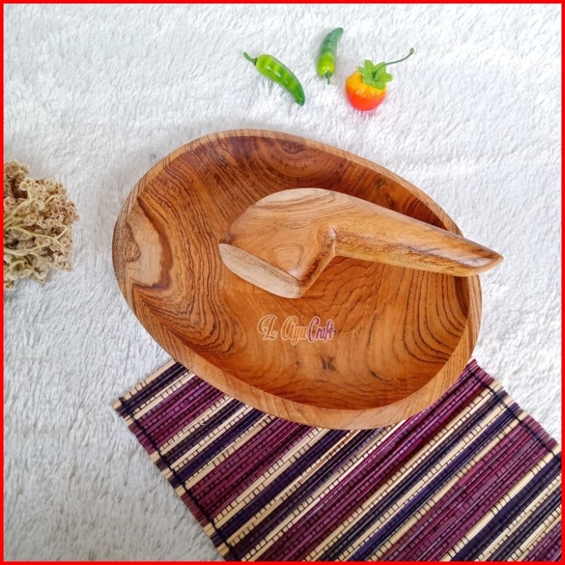 L-ayucraft Cobek Uleg Kayu Jati Oval 25x20cm
