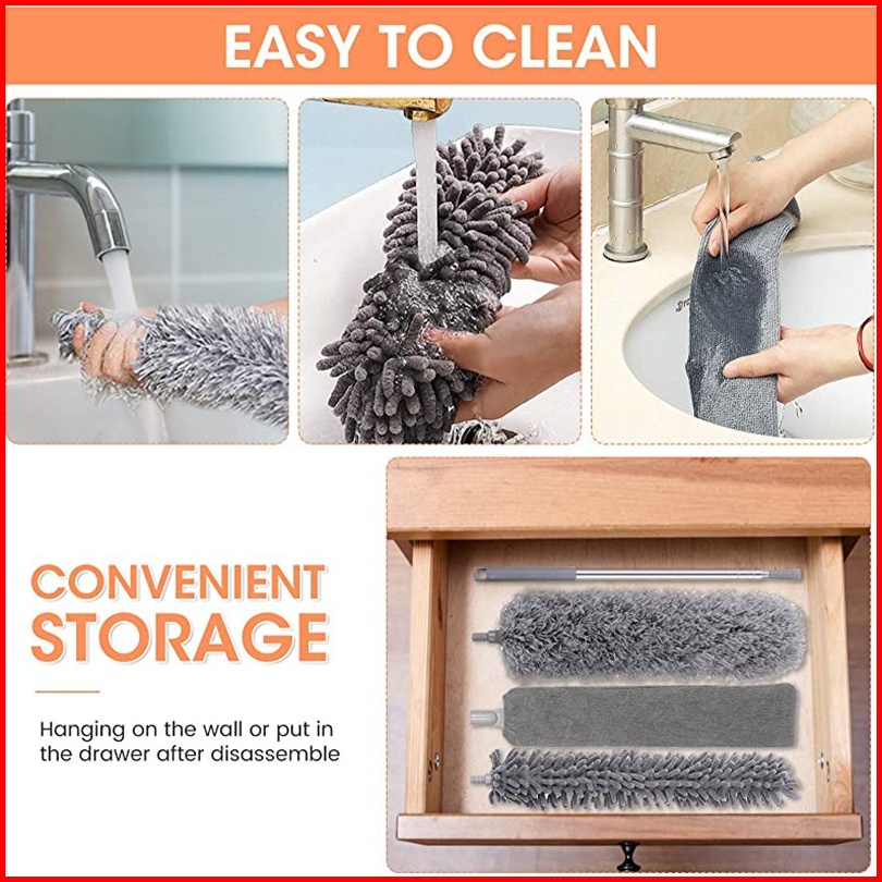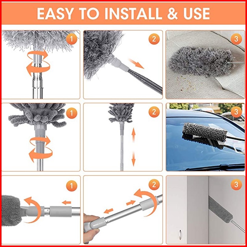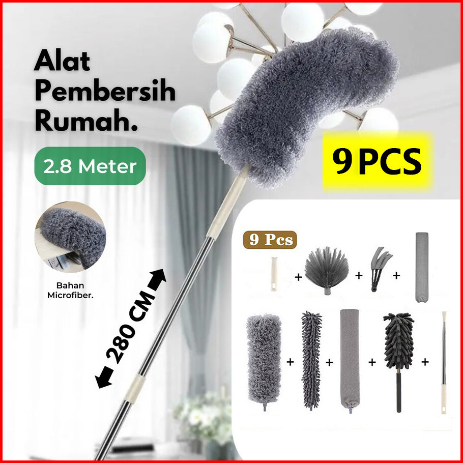 8 9 Pcs Kemoceng Microfiber 280cm Tarik Tekuk Panjang Alat Pembersih Langit-langit Rumah Alat Pembersih Rumah Kemoceng B